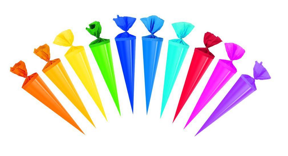 10x Bastel Schultüte / Länge: 35cm / rund / Farbe: glanzlackiert