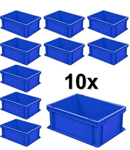 10x Euro-Stapelbehälter mit 2 Griffleisten, LxBxH 400x300x170 mm, 16 Liter, blau