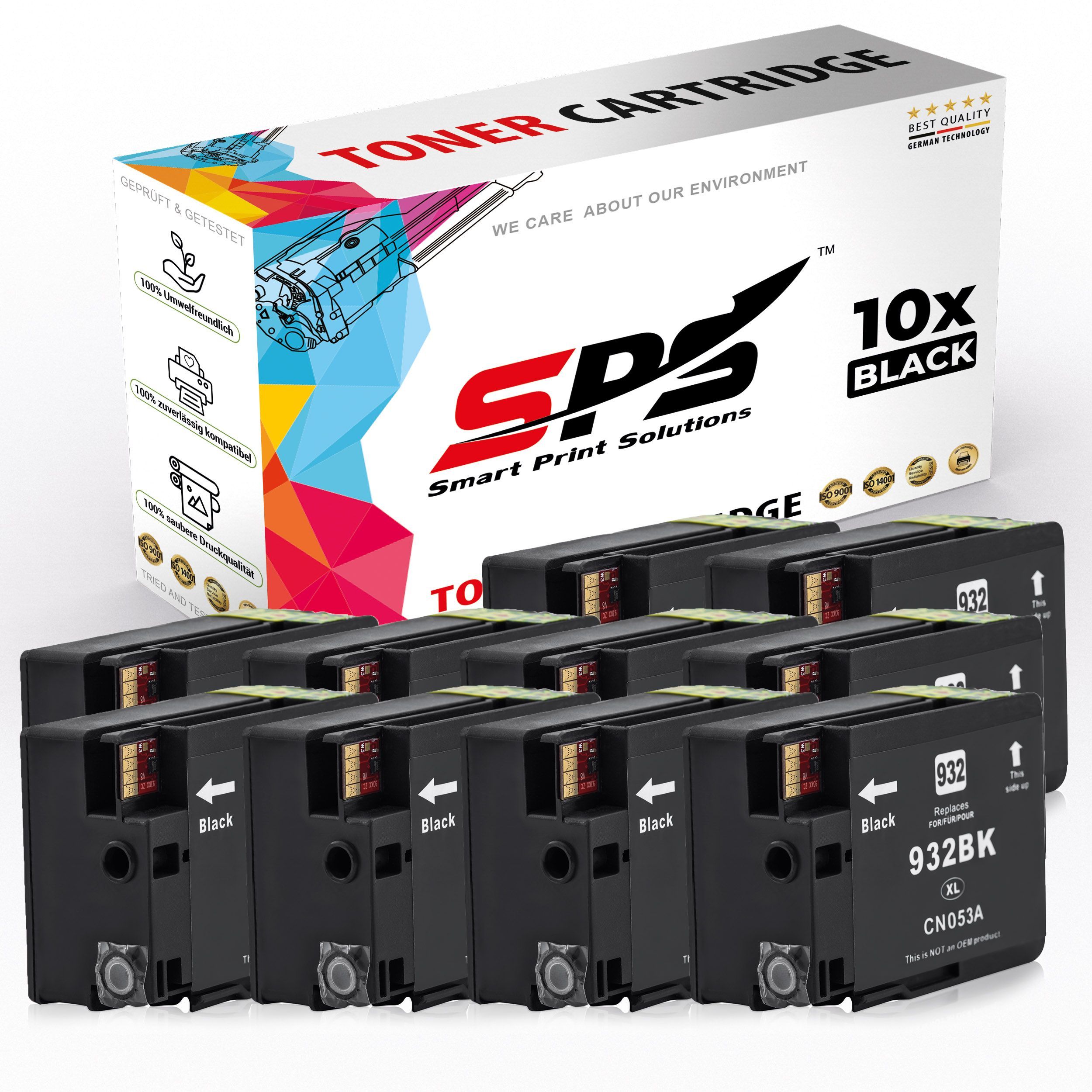 10x Kompatibel für HP Officejet 6100 E Printer Druckerpatronen 932XL CN053AE Schwarz