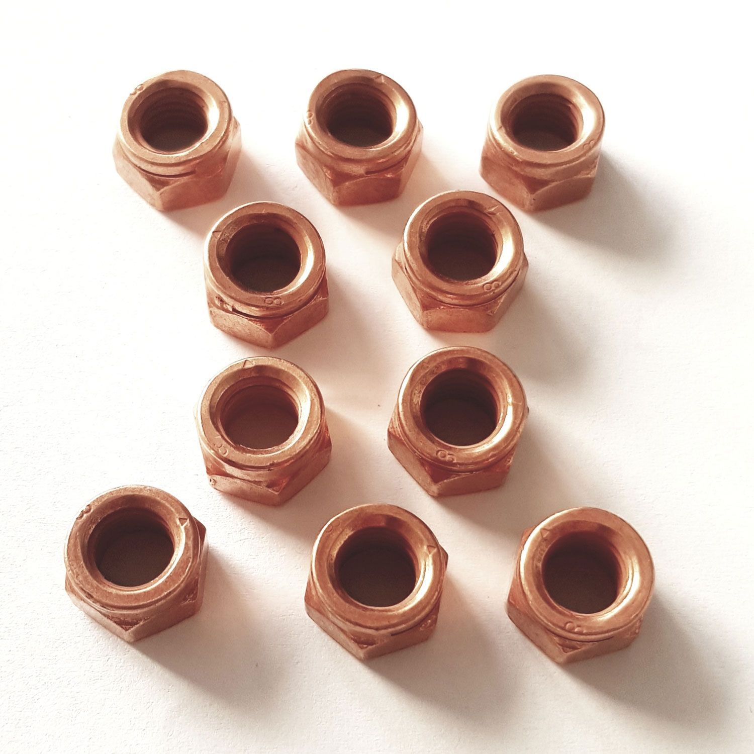 DMT 10x Mutter M8 SW12 verkupfert mit Sicherungsschlitz HN 14441 Krümmer