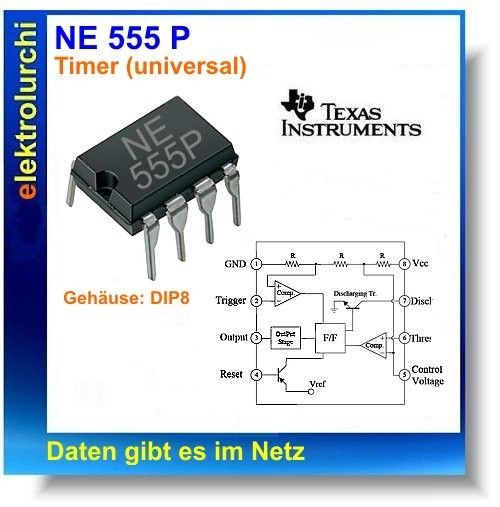 Texas Instruments 10x NE555P NE555 Timer Taktgeber Zeitgeber DIP-8, DIP8, Texas Instruments, 10St.
