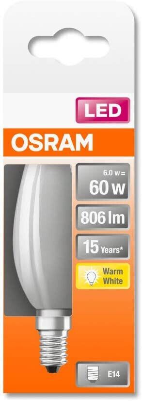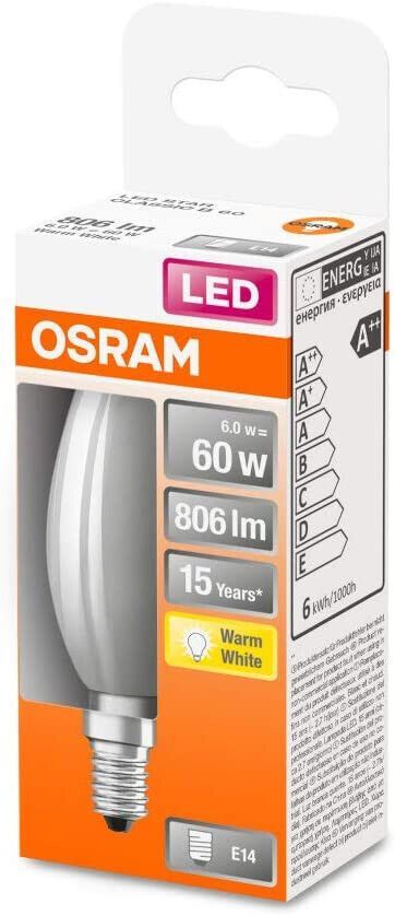 OSRAM 10x Osram LED Classic B 60 Kerze warmweiß 6W = 60W E14 EEK: D (Spektrum A-G)