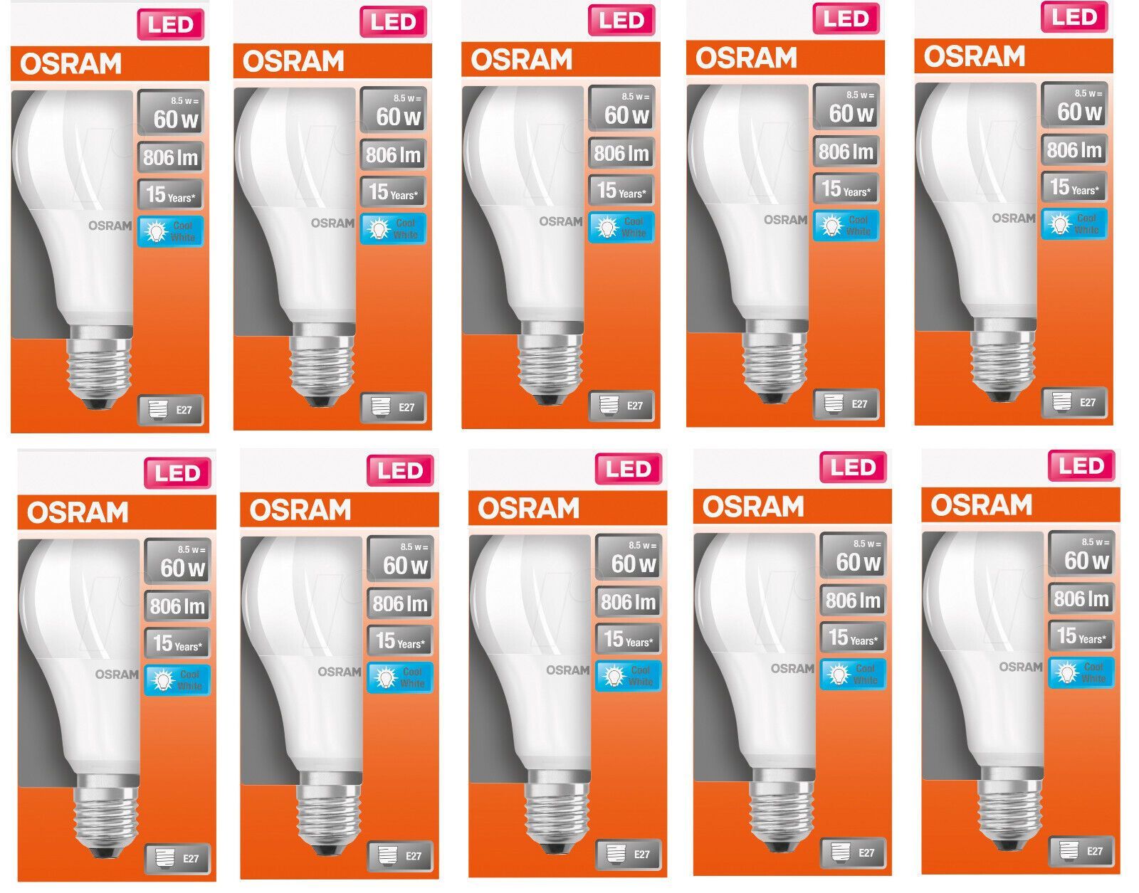 OSRAM 10x Osram LED Star Classic A 60 Birne E27 kaltweiß 8,5W = 60W EEK: (Spektr A-G)