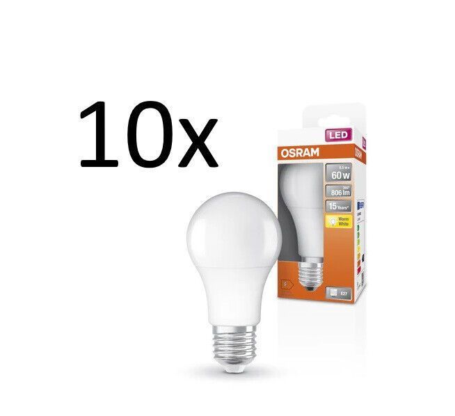 OSRAM 10x Osram LED Star Classic Birne E27 warmweiß 8,5W = 60W EEK: (Spektr. A-G)