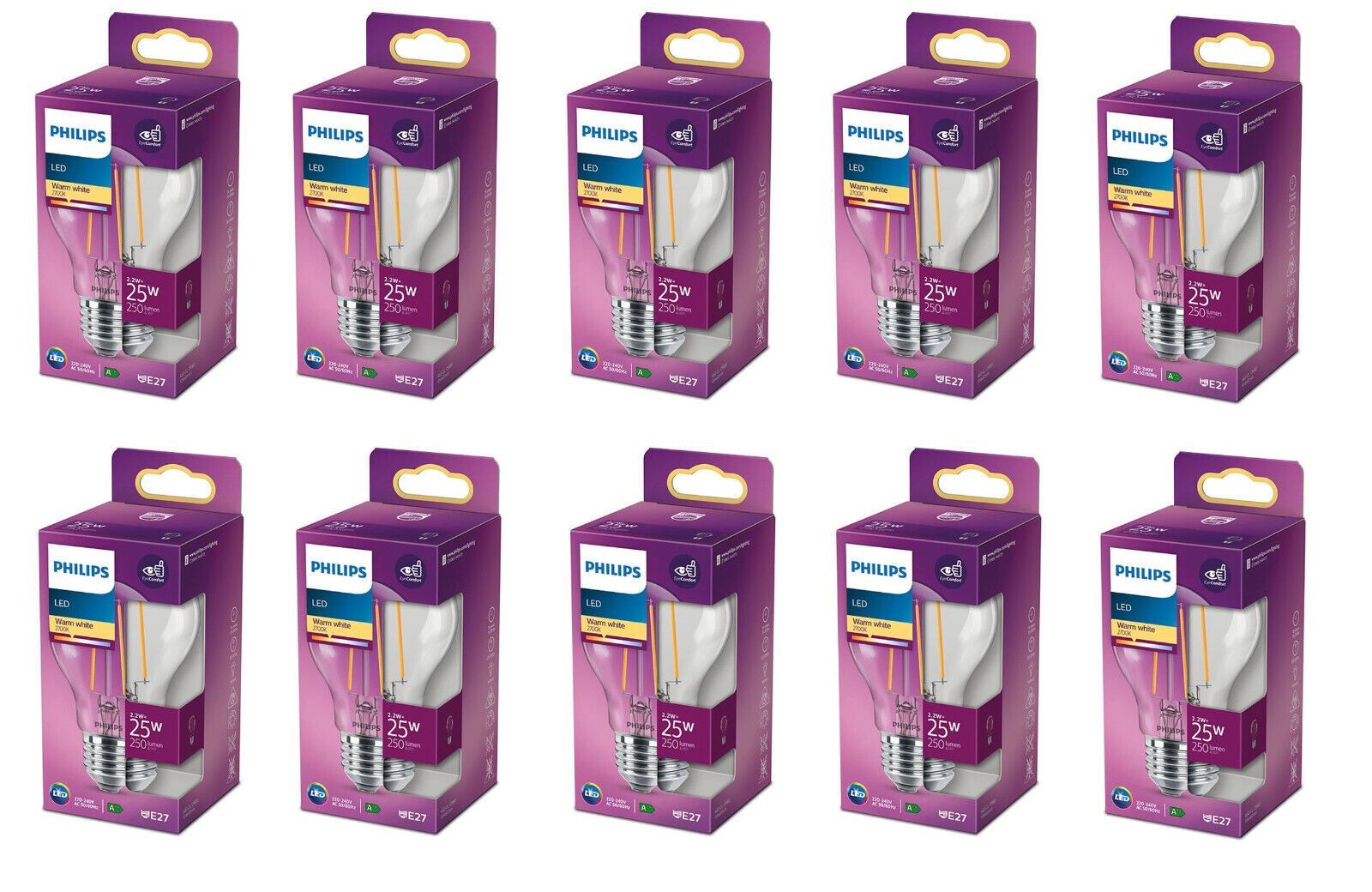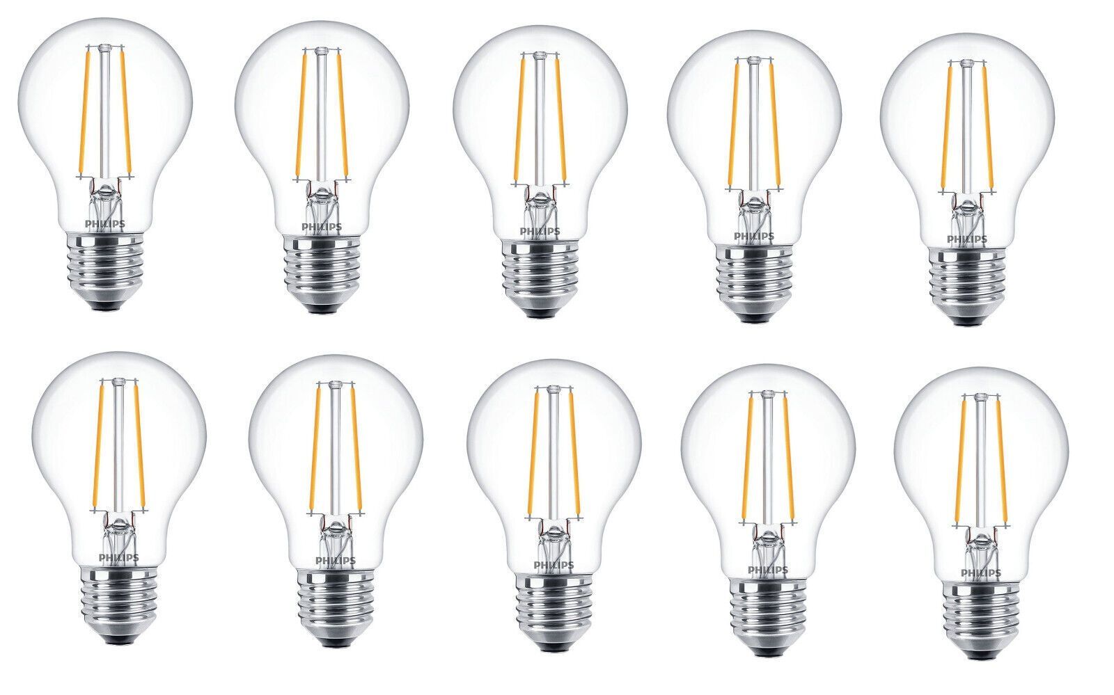 Philips 10x Philips LED Filament Birne E27 warmweiß 2,2W = 25W EEK: (Spektrum A-G)