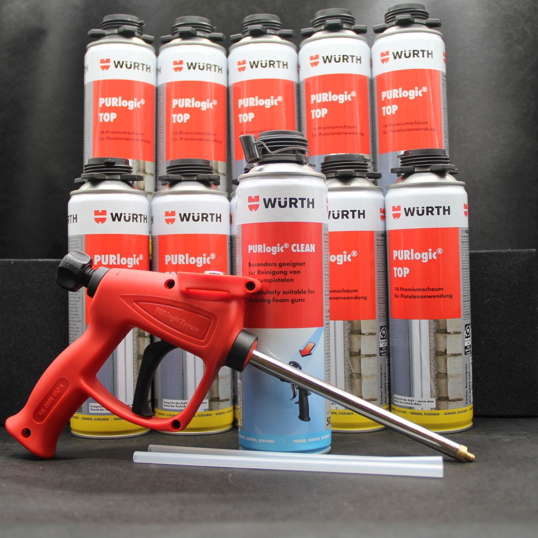 10x Pistolenschaum + Hochwertiger Schaumpistole + Reiniger für Schaumpistole