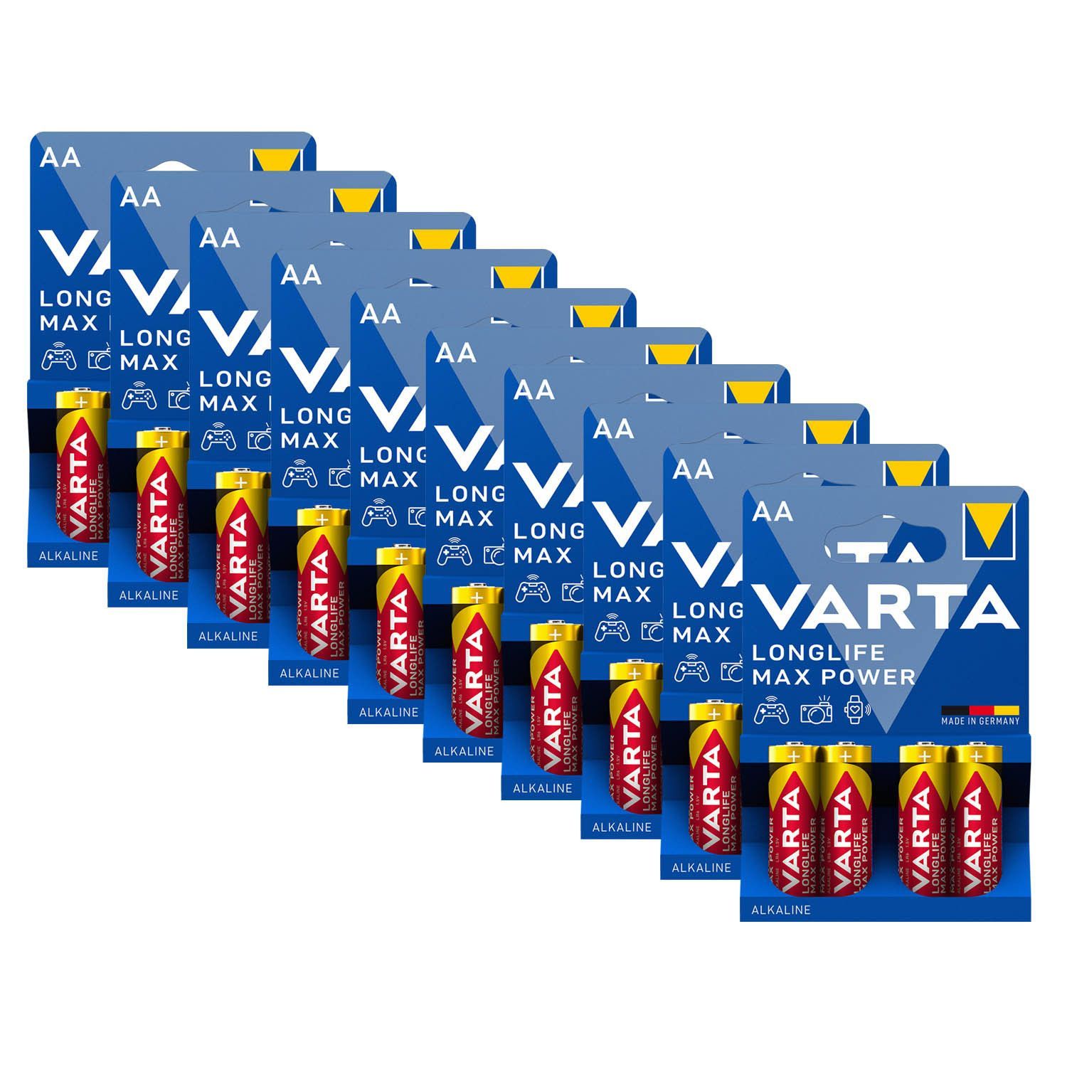 Varta 10x Varta Longlife Max Power Batterien AA Mignon LR6 1,5V Batterie 4er Blister