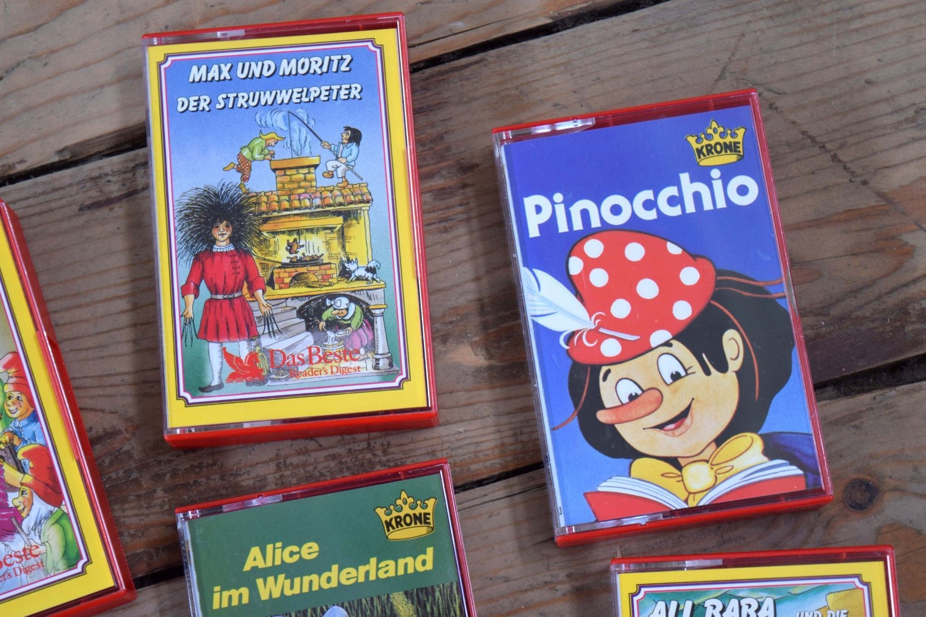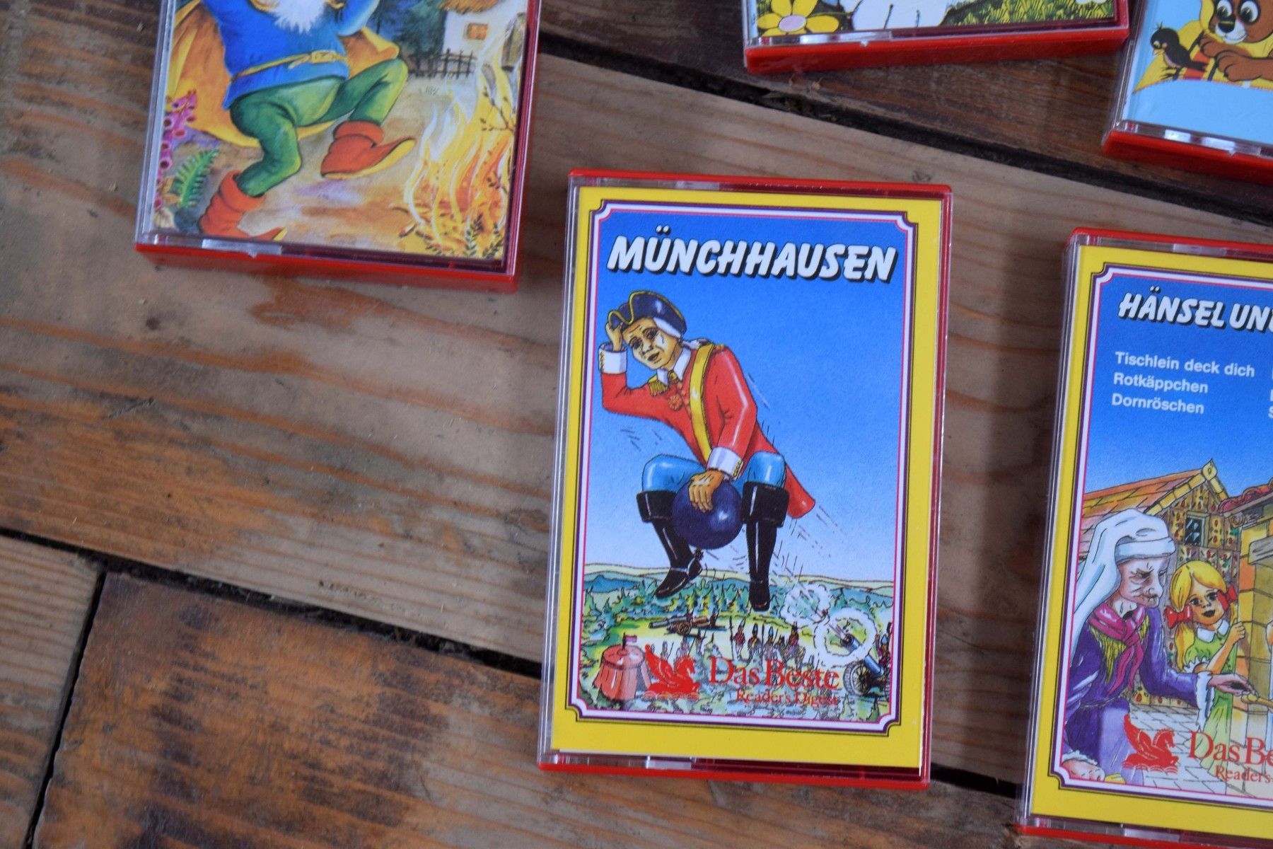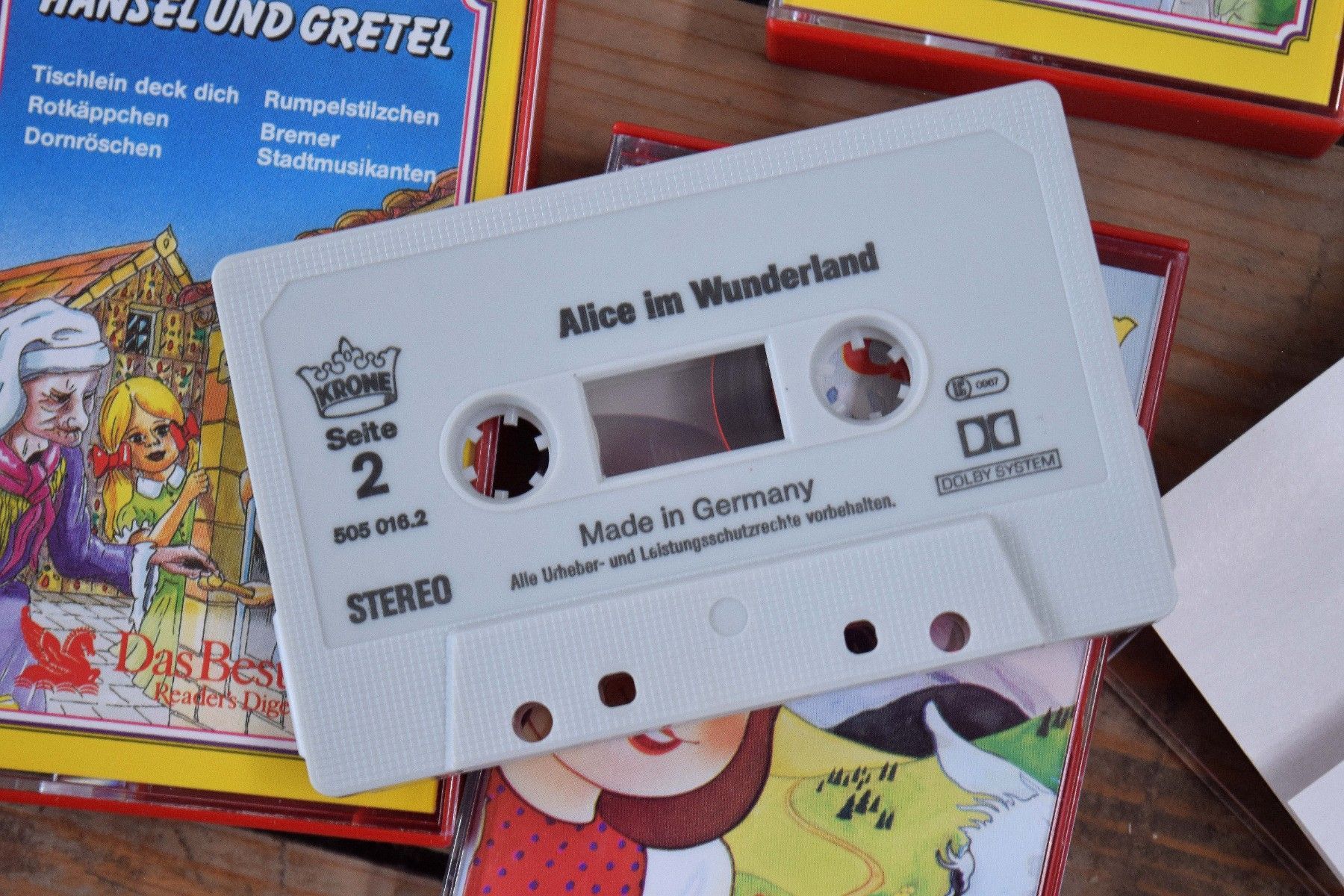 11 Kassetten in Kassettenkoffer Märchen Kasettenbox Auto Rot Schwarz mit Sichtfenster