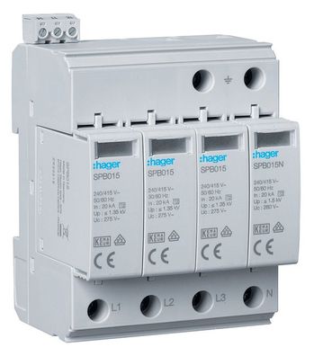 1St. Hager SPB415 Überspannungsableiter T2 4P 40kA TT/TNS Defektanzeige + Kontakt