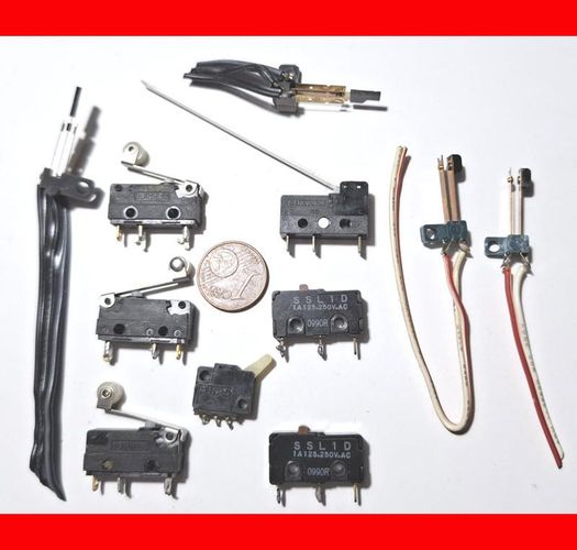 Habe mal etwas aufgeräumt und biete hier 11 Stück Kontakt-Schalter für den RC-Modellbau. Die meisten schliessen bei Kontakt oder schalten um. Prima zum Bau von Funktionen. Zum Größenvergleich siehe den Cent in der Mitte. Beim Gewinn mehrerer Auktionen wird natürlich nur einmal Porto berechnet und Si