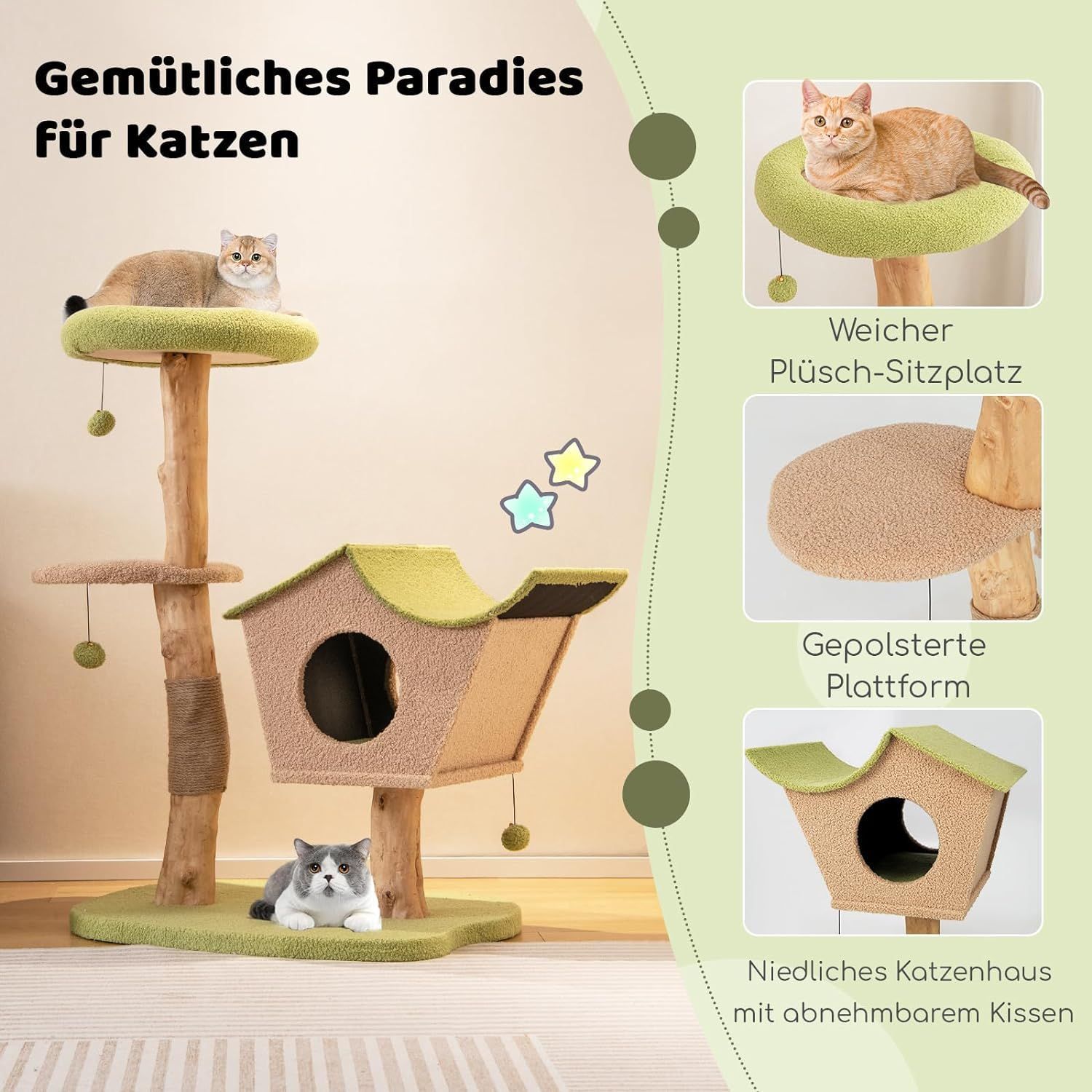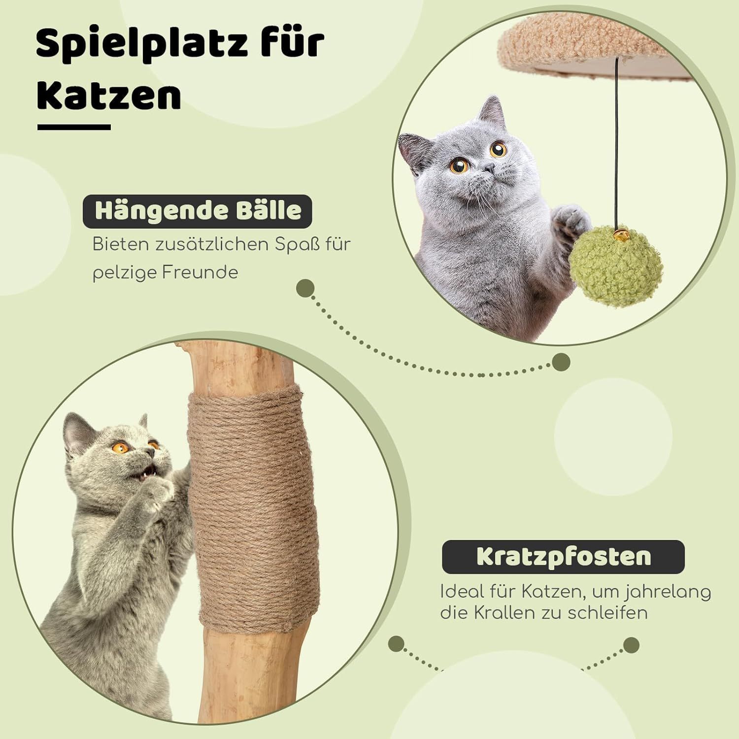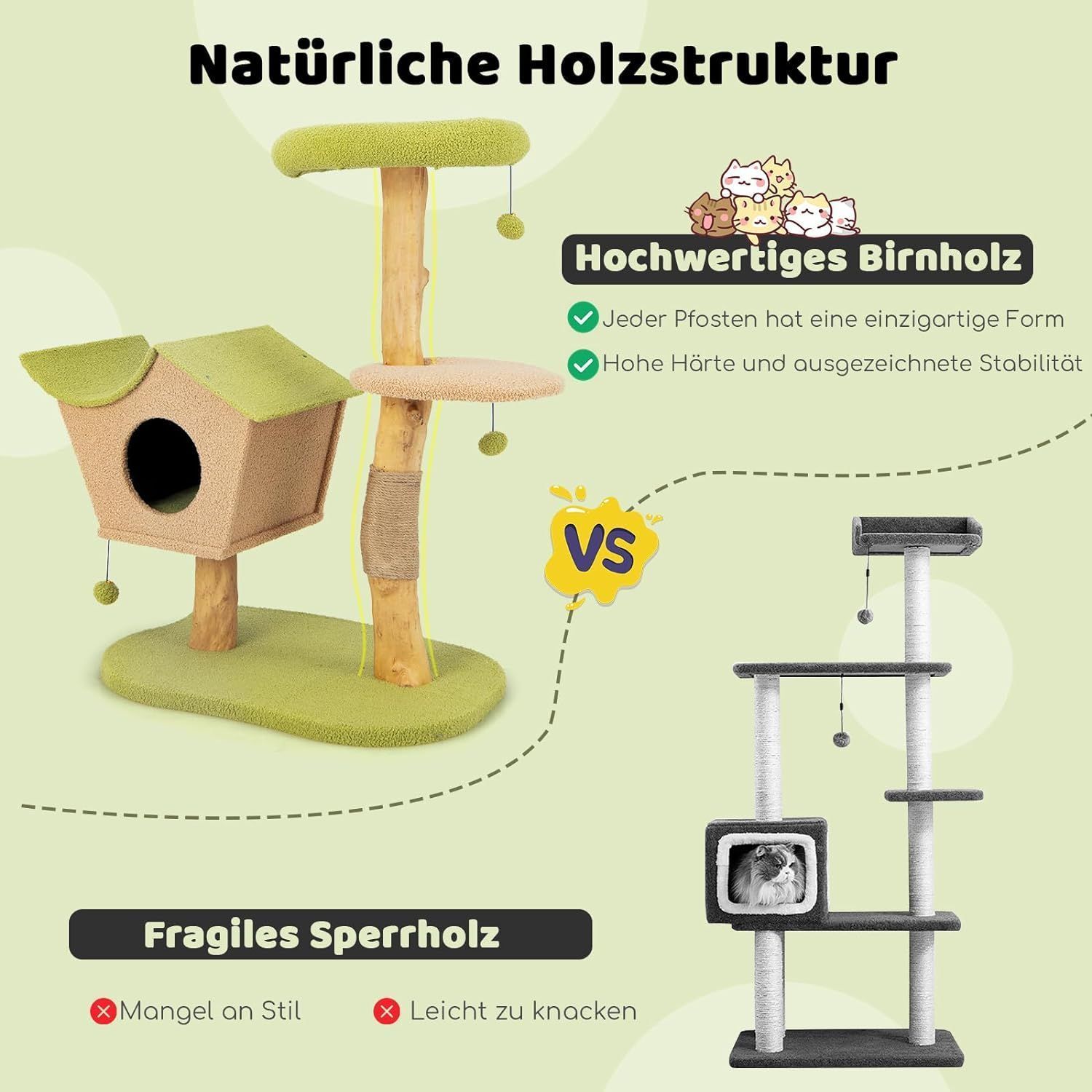 • Fudajo Kratzbaum Zweigdesign Katzenhöhle 80cm Katzenkratzbaum Holz Katzenbaum