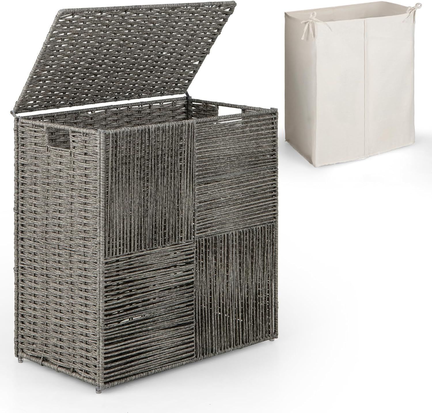 110L Wäschekorb mit Deckel, Wäschesammler mit 2 Fächern, Wäschesortierer klapbbar