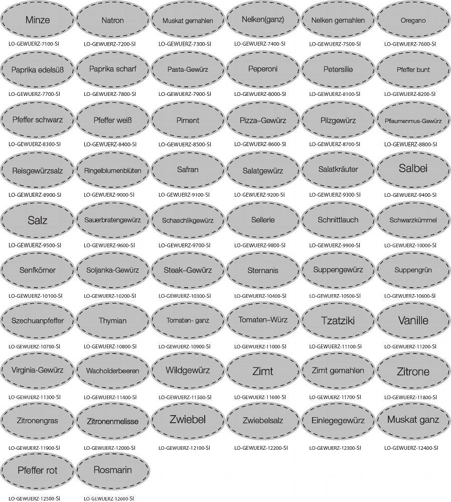 116 Gewürzaufkleber silber matt Gewürzetiketten Etiketten