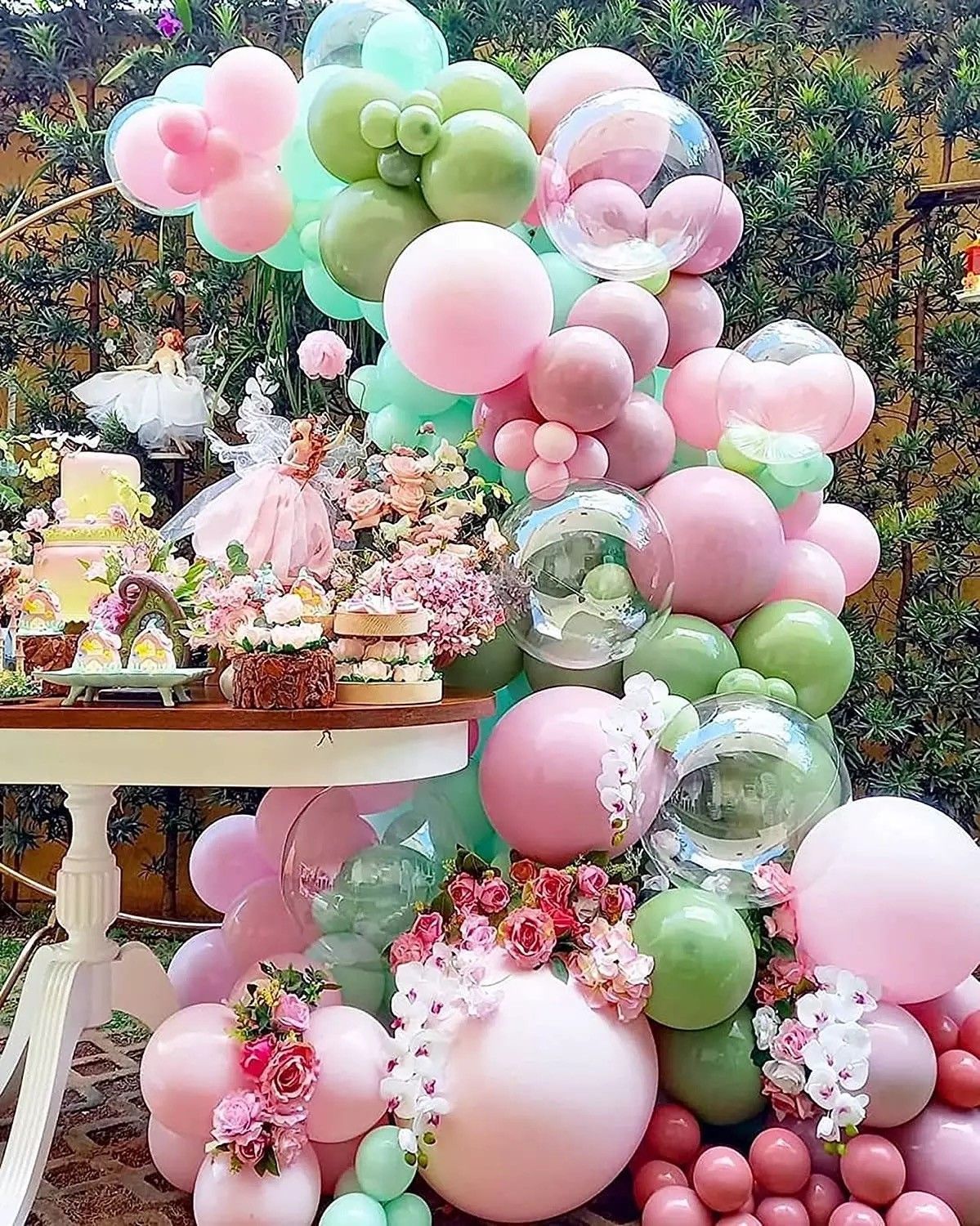 119 STÜCK LUFTBALLON-GIRLANDEN-BOGEN-SET : 6 x 18 PVC-Luftballons transparente Bobo 110 Latexballon (20 x 10 rosa, 30 x 10 olivgrün, 20 x 10 minzgrün, 10 x 10 magenta pink, 15 x 5 rosa, 15 x 5 minzgrün) 1x Ballonknoten-Bindewerkzeug 1 x Ballongirlande Lochband 1 x Klebepunkte. HINWEISE UND GARATNIE