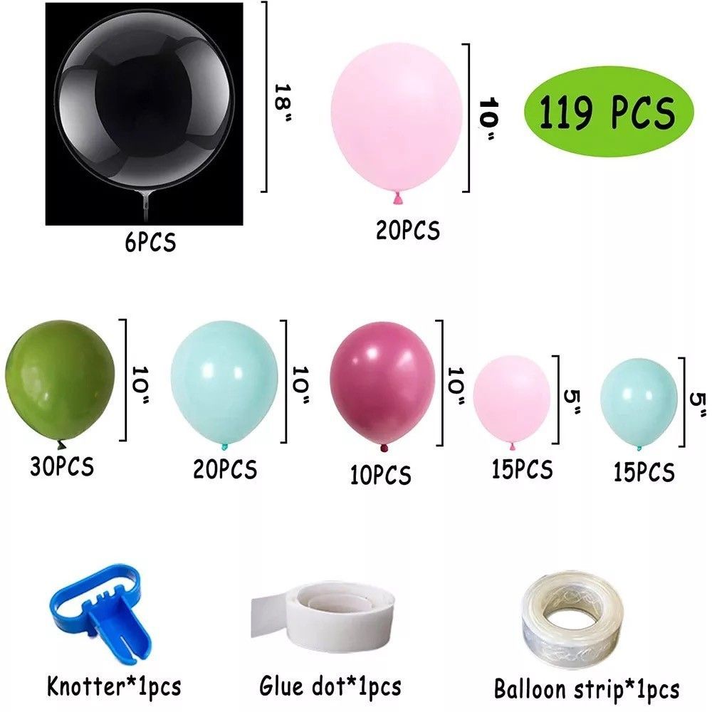119 Stück Luftballon-Girlanden-Bogen-Set mit Bobo Ballon - grün-pink rosa-türkis