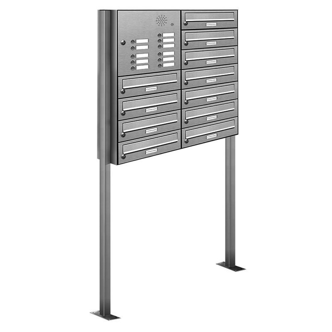 11er Premium Edelstahl Standbriefkasten Anlage Klingel Postkasten mit Ständer