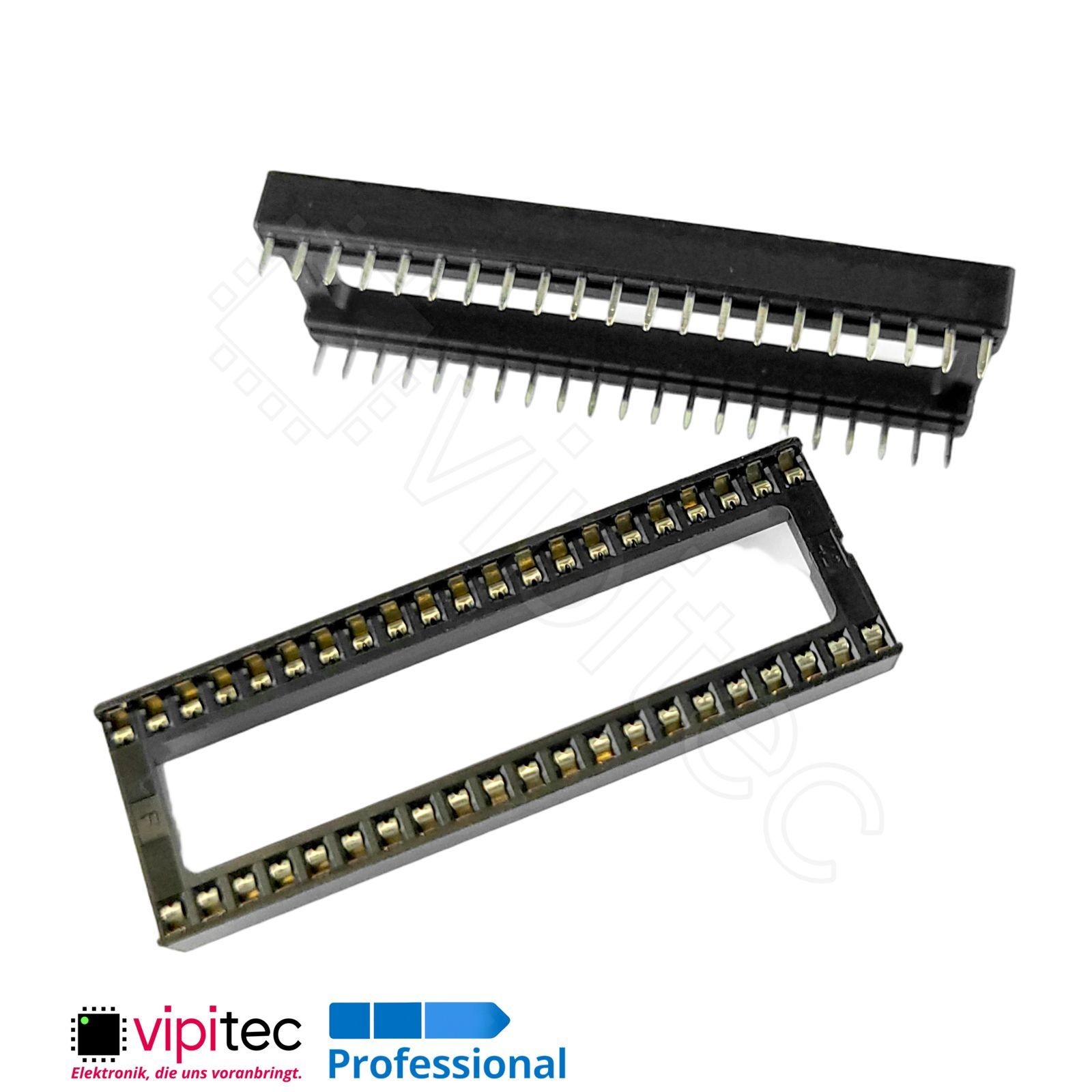 Dieser IC-Sockel ist für 42-polige Dual-Inline-Bausteine ausgelegt und bietet eine praktikable Alternative zum direkten Verlöten von integrierten Schaltkreisen. In der Fachsprache als DIP- bzw. DIL-Sockel bezeichnet, ermöglicht die Fassung das werkzeuglose Ein- und Ausstecken von Chips und reduziert so mechanische und thermische Belastungen beim Austausch. Das Push-On-Anschlussprinzip sorgt für sicheren Kontakt der IC-Anschlüsse mit den Federkont
