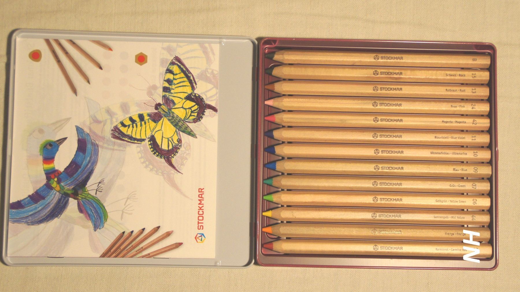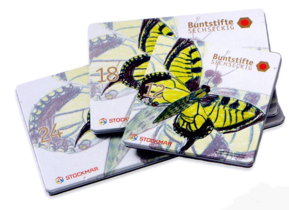 Dicke Buntstifte von Stockmar - 12+1 Buntstifte von Stockmar, sechseckig, in Blechschachtel, Normal 0 21 false false false DE X-NONE X-NONE Farben: Karminrot (1), Orange (3), Sonnengelb (44), Gelbgrün (6), Grün (7), Blau (9), Ultramarinblau (10), Blauviolett (11), Magenta (42), Rosa (24), Rotbraun (... Mehr