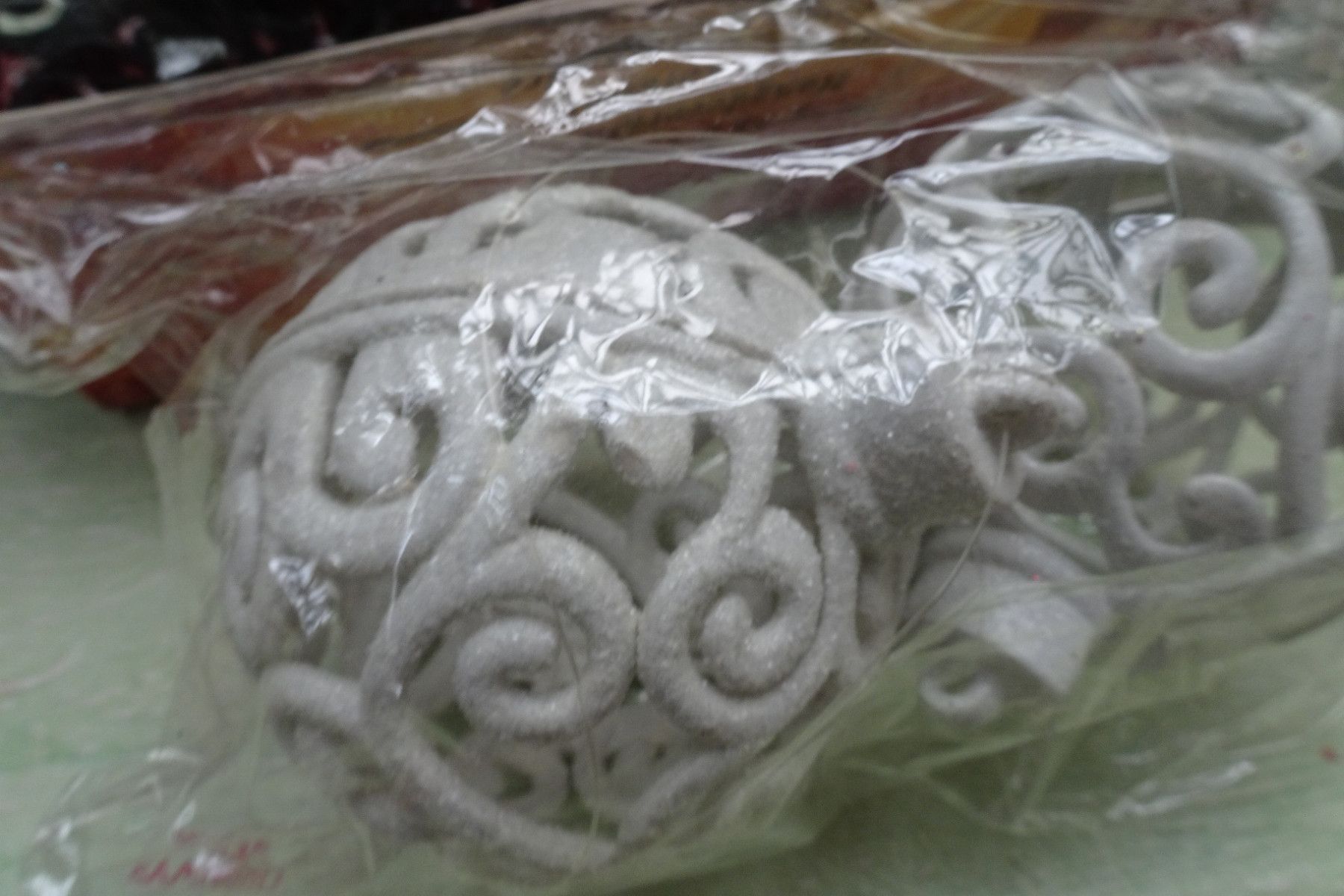 12 Acryl Weihnachtskugeln Dekoration verschnörkelt zum Öffnen Befüllen Hängeöse