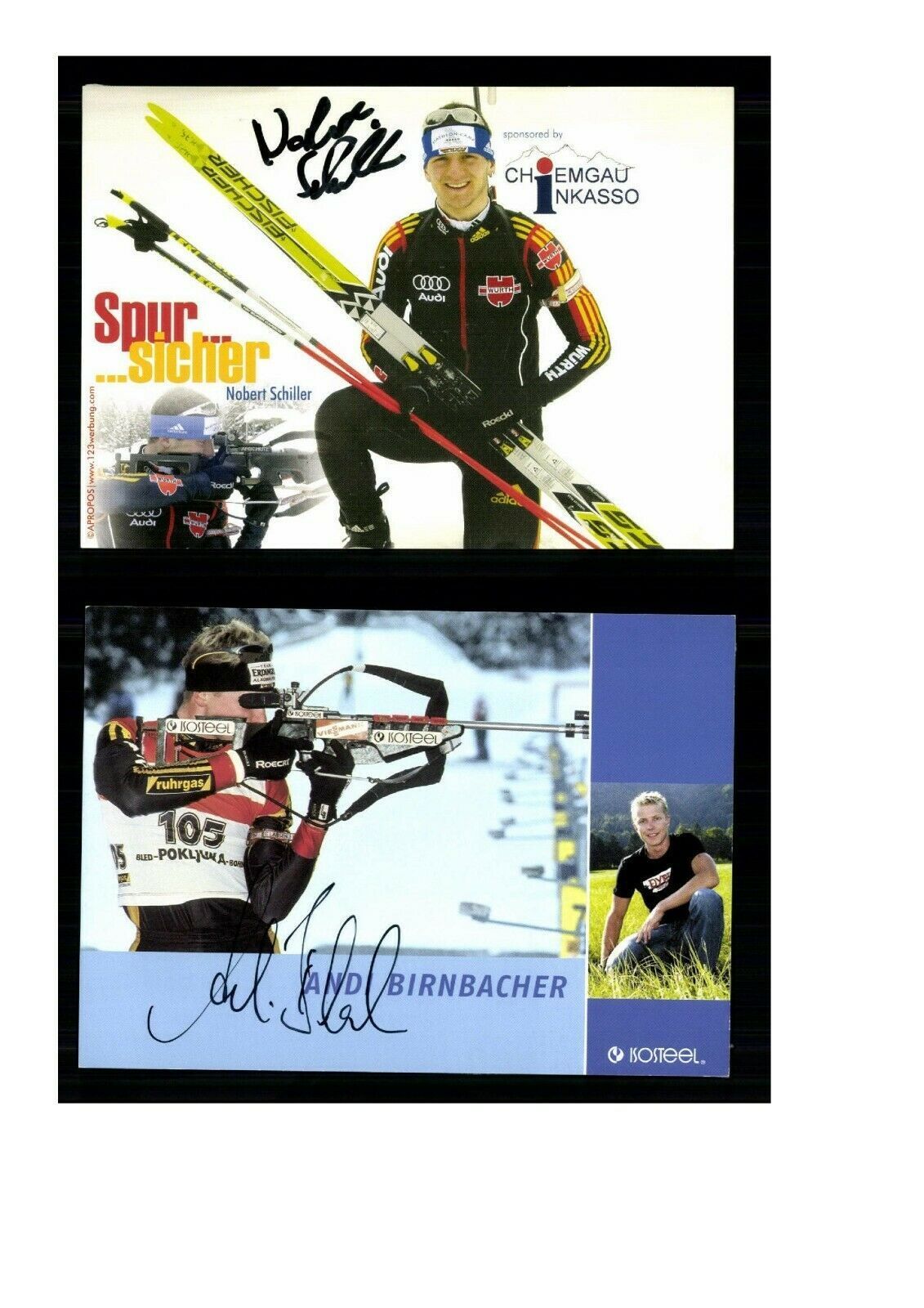 12 Original handsignierte Autogrammkarte !!! alle Karten die abgebildet sind sind mit dabei folgende Karten sind dabei: Norbert Schiller,Andreas Birnbacher,Romy Beer,Kati Wilhelm,Florian Graf 3x,Andreas Henkel,Tina Bachmann,Brigitte Obermoser,Hanna Falk,Magdalena Neuner Größe : 10,5x14,8 cm A rt des