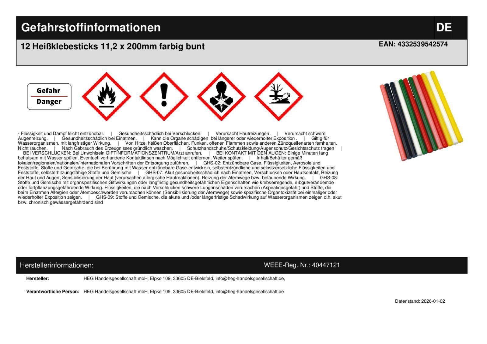 12 Heißklebesticks 11mm 11,2 x 200mm farbig bunt Heißkleber Klebesticks Patronen