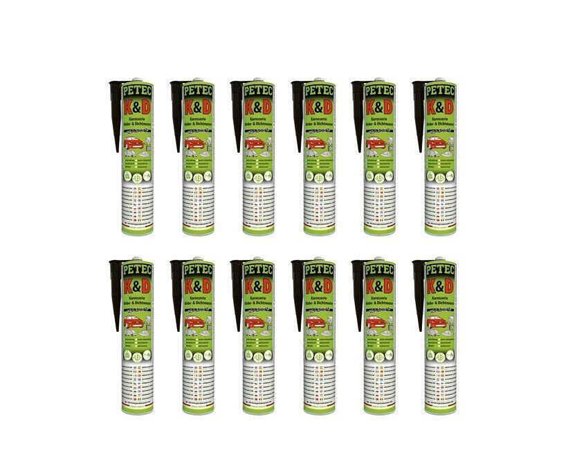 PETEC 12 Kartuschen PETEC K&D Karosserie Klebe- & Dichtmasse, schwarz, 310ml