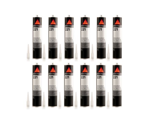 12 Kartuschen Sikaflex 221, versch. Farben, 300ml, multifunkt. Kleb-& Dichtstoff