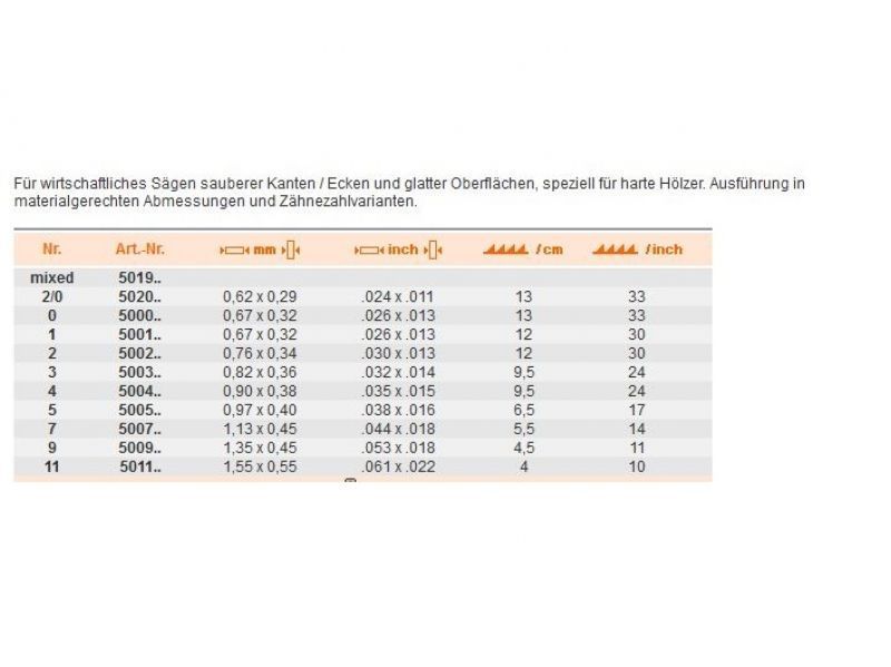 12 Laubsägeblätter 130mm , Taifun 50 , Größe 7 , für harte Hölzer