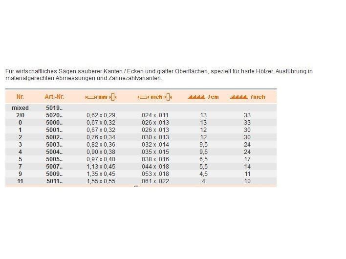 12 Laubsägeblätter 130mm , für harte Hölzer , Doppelzahn , Taifun 50