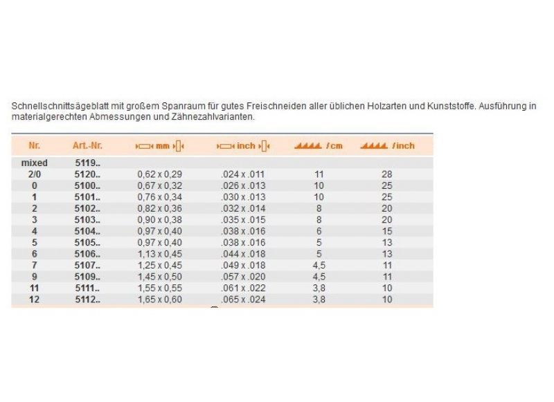 12 Laubsägeblätter 130mm , Taifun 51 , Größe 2/0 , für Holz und Kunststoff