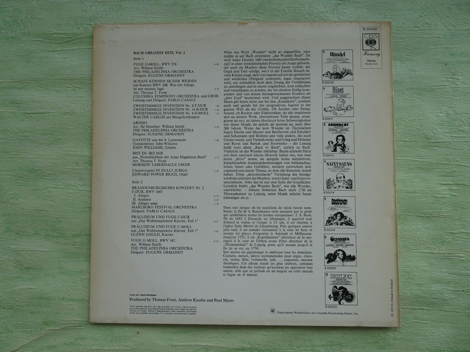 12" LP CBS Harmony Greatest Hits Bach Tchaiskowsky Berlioz Händel Mendelssohn.....