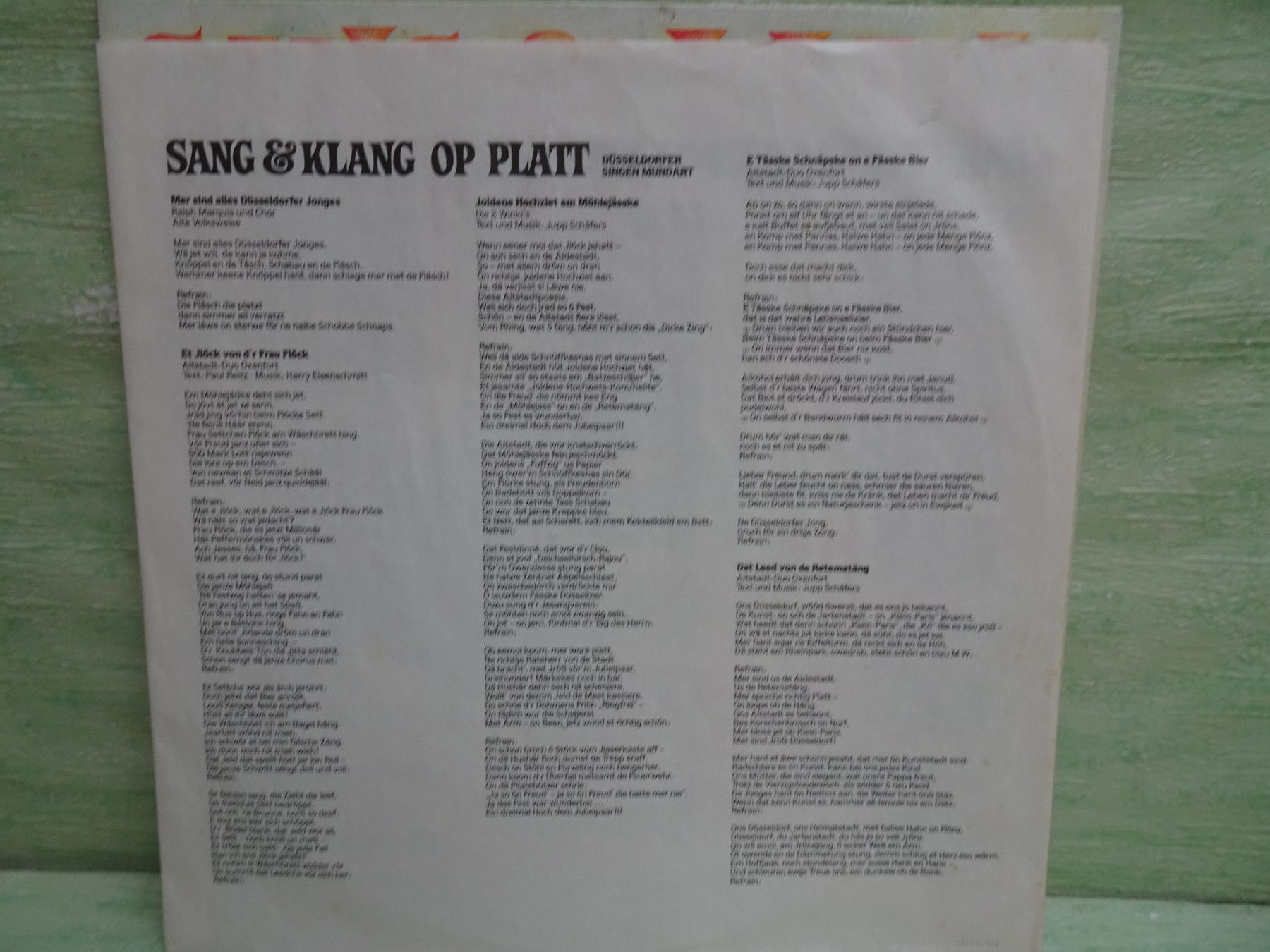 12" LP Sang & Klang op Platt Düssedlorfer singen Mundart Mundartfreunde 1969 EV 1985