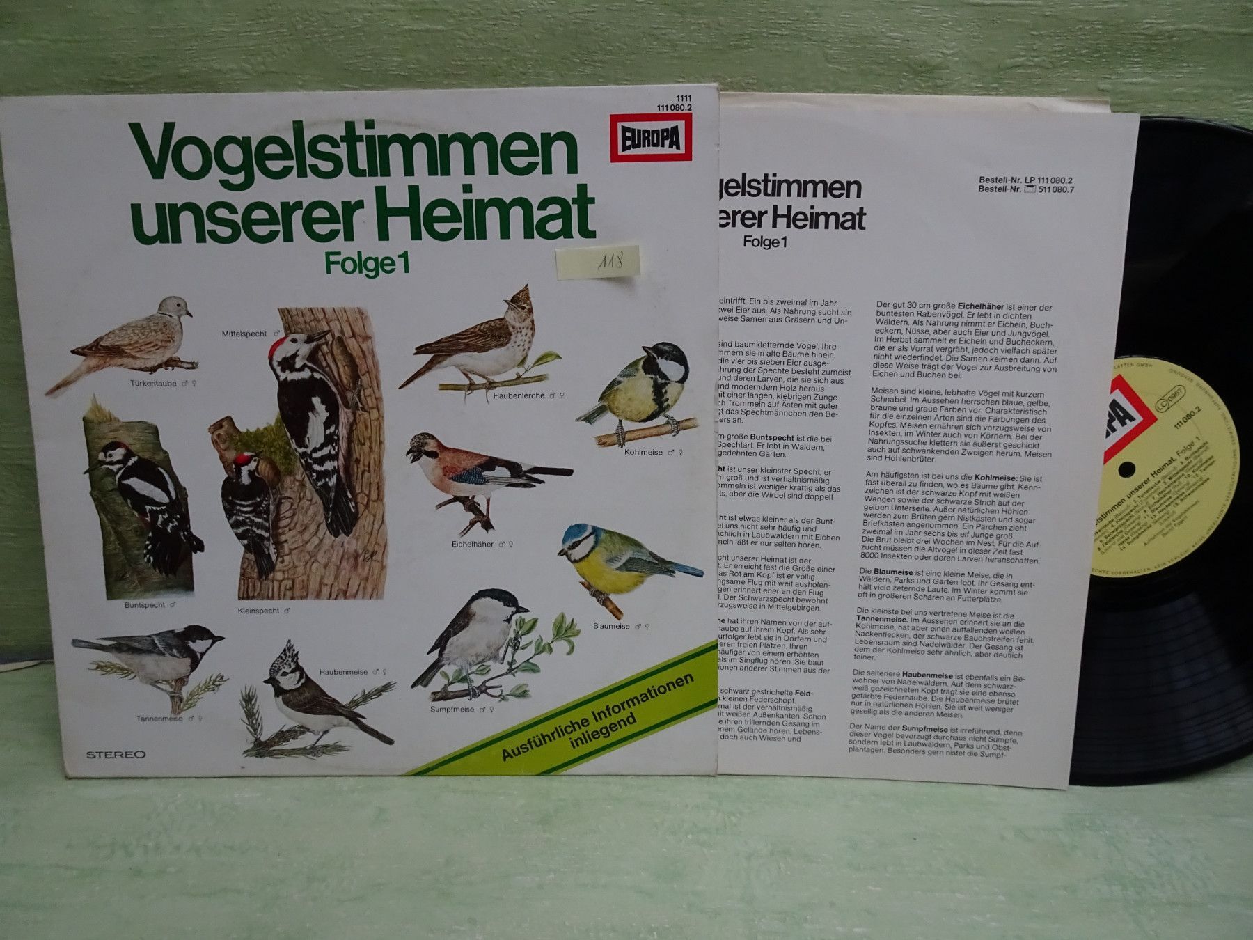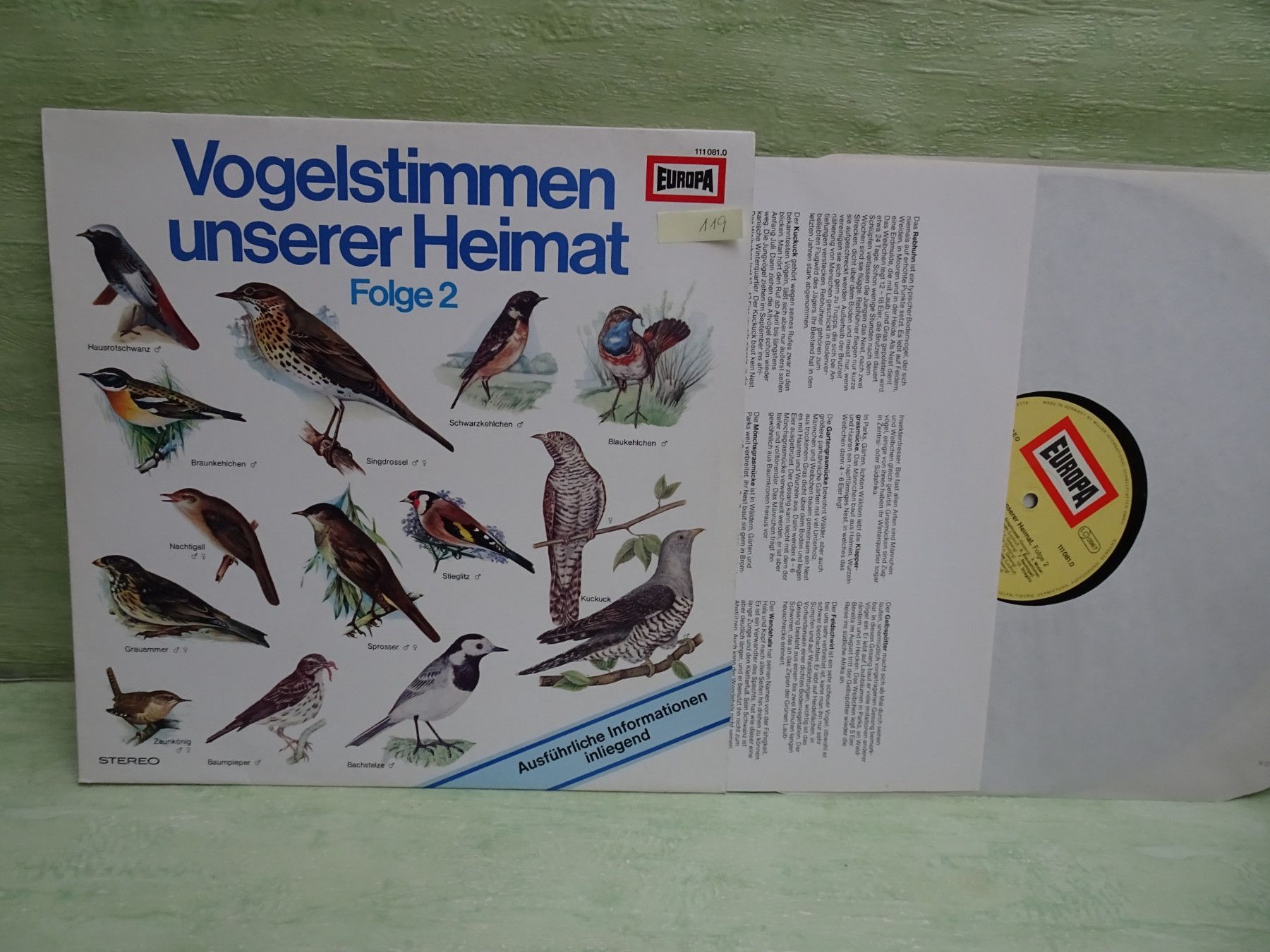 * * * Sammeln & Seltenes - Hörspiel Vinyl * * * * ... aus Freude an schönen Dingen ..... Vinyl - LP- Single - Schallplatten 118 Vogelstimmen unserer Heimat Folge 1 mit Beiblatt Europa 1111 111080.2 LP gut++ 119 Vogelstimmen unserer Heimat Folge 2 mit Beiblatt Europa 111081.0 LP gut++ 120 So sing