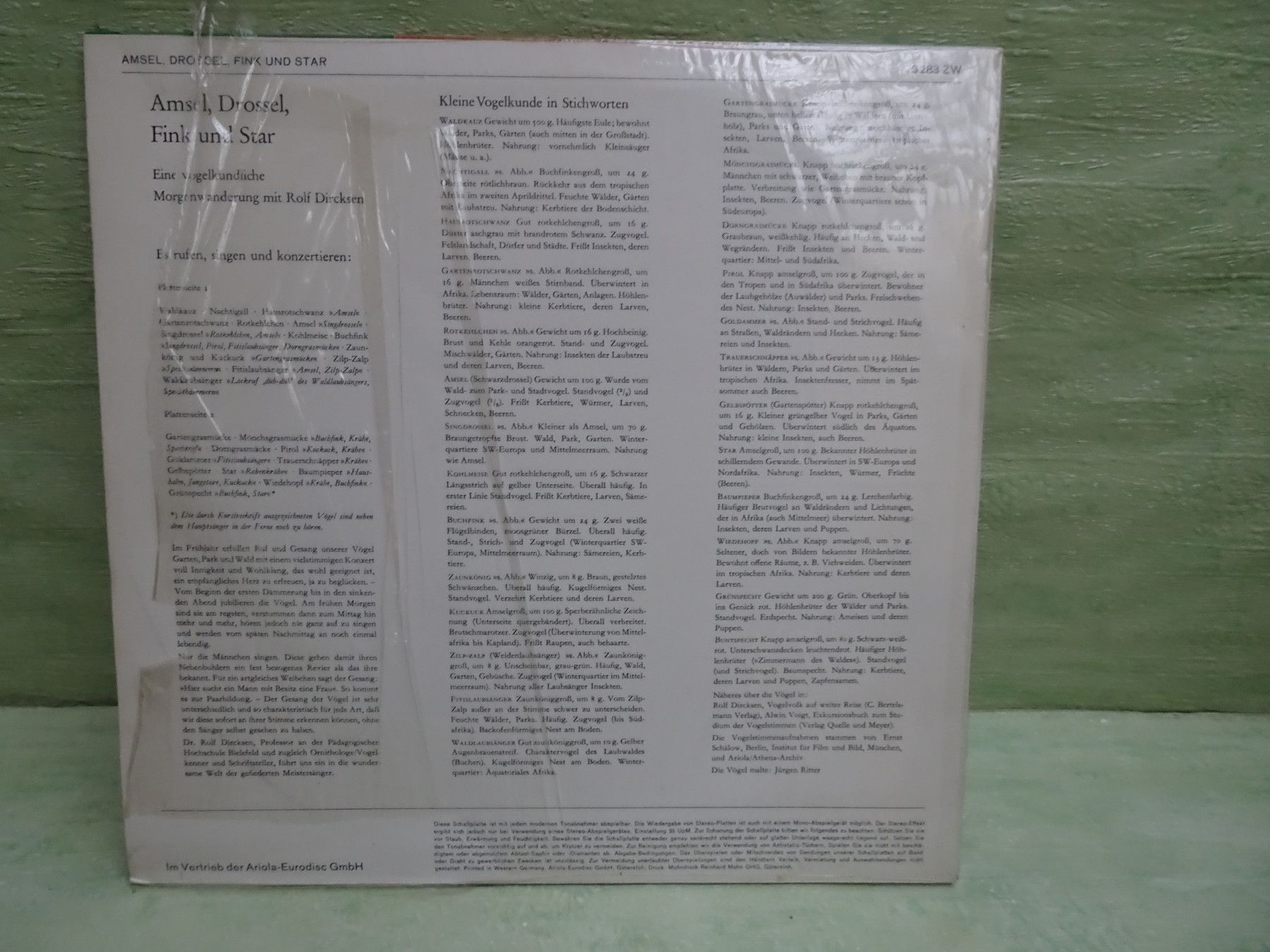 12" Lp Vogelstimmen unserer Heimat So singen unsere Vögel Amsel Drossel Fink & Star