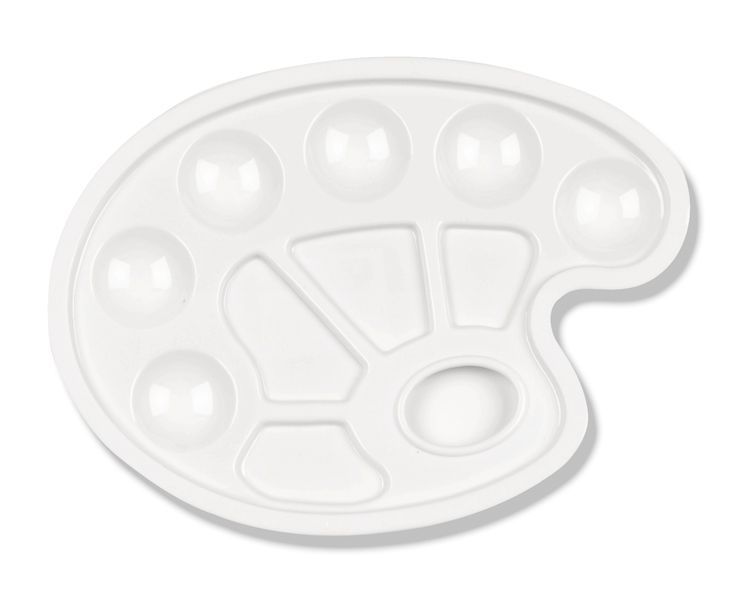 12 Mischpaletten 6 runde Farbfelder 4 Mischfelder mit Griffloch Kunststoff Farbe: weiß