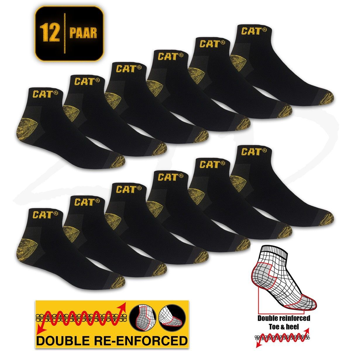12 Paar CAT® Caterpillar Premium WORK Sneakers Arbeits Sneaker Socken Strümpfe