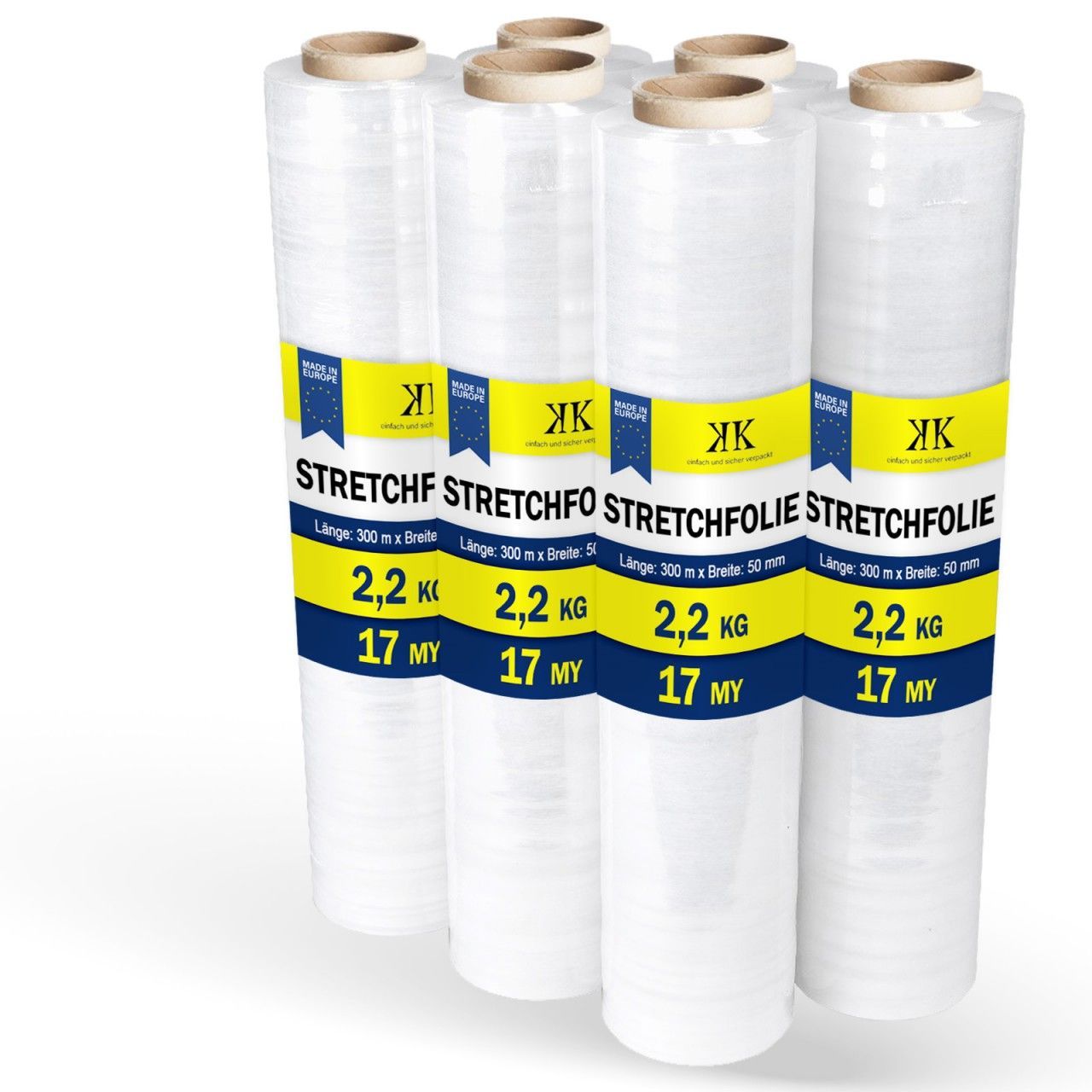 12 Rollen Stretchfolie Palettenfolie Wickelfolie 17 my 500mm x 300m transparent