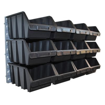 12 schwarze Sichtlagerkästen Lagersichtkasten und Wandhalter