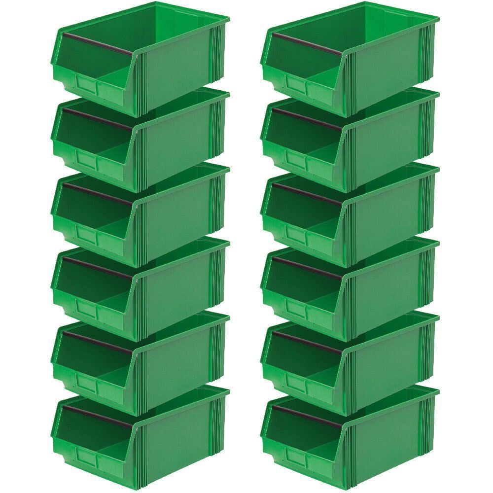 12 Sichtboxen "CLASSIC? FB 2 mit Tragstab, LxBxH 510/450x300x200 mm, grün