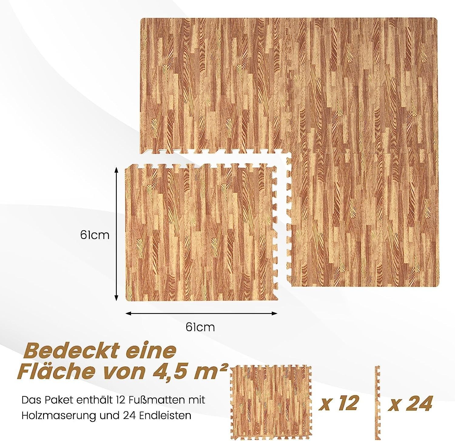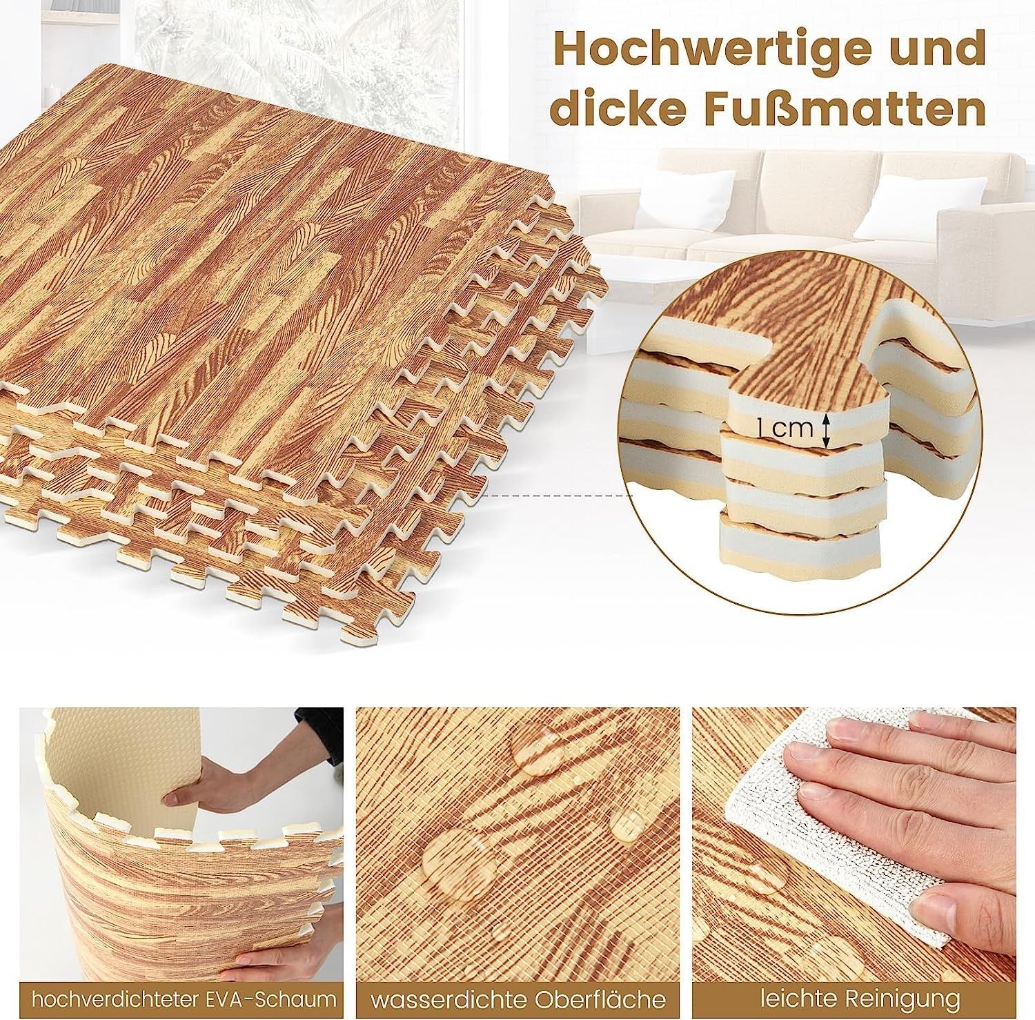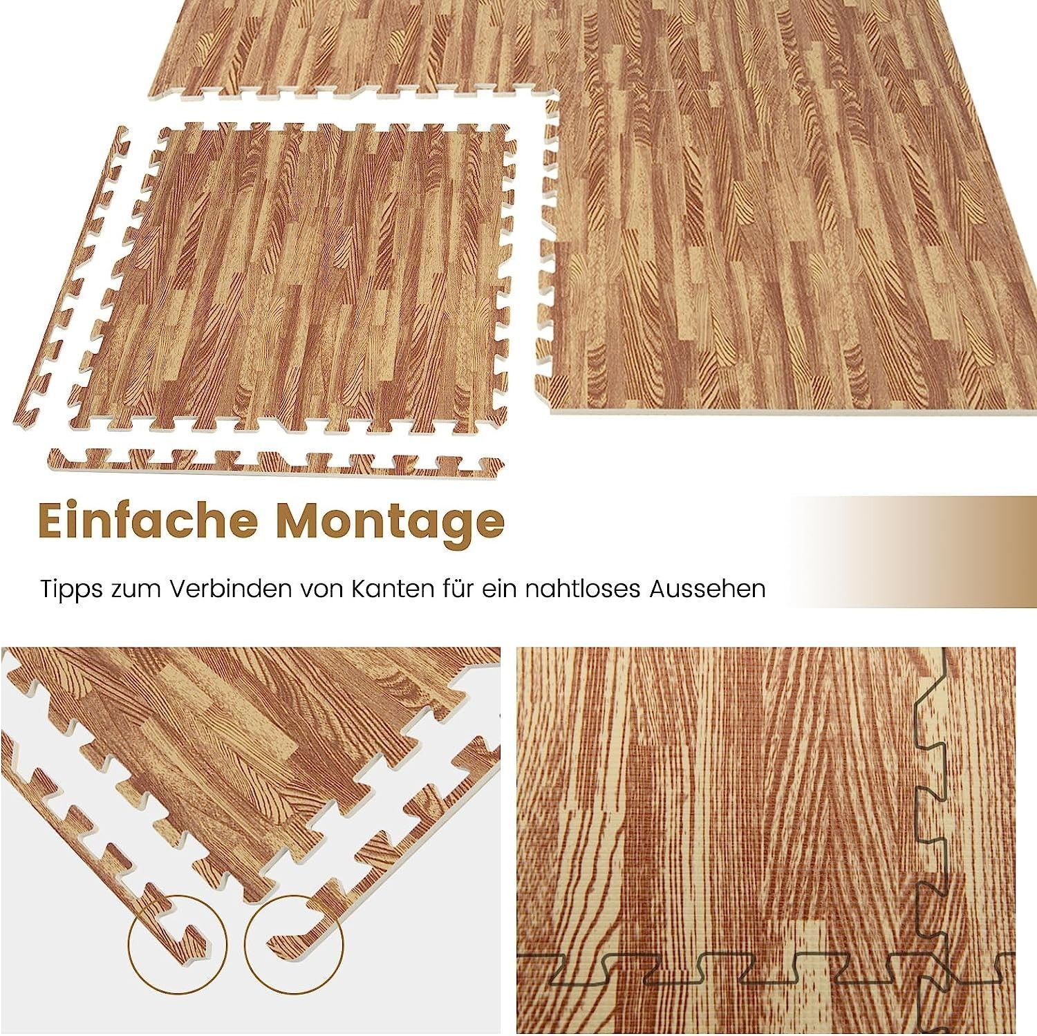 12 Stück Schutzmatte, Puzzlematte aus Eva, 61 x 61 cm, Bodenmatte mit Holzmasserung