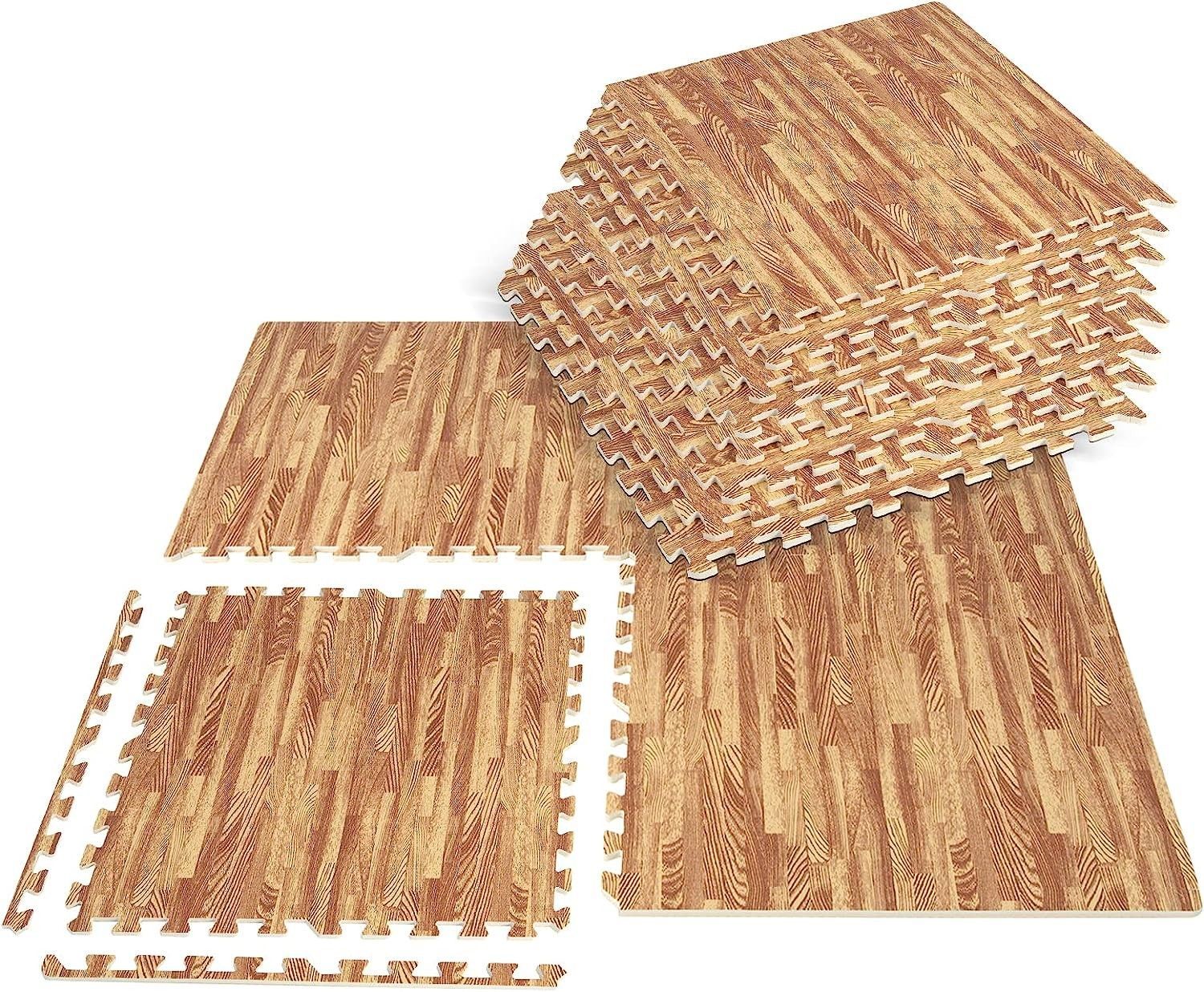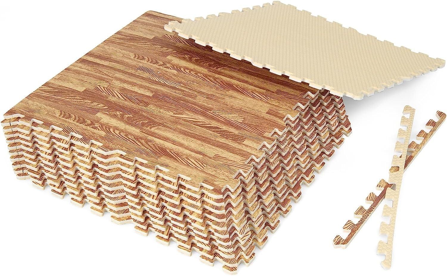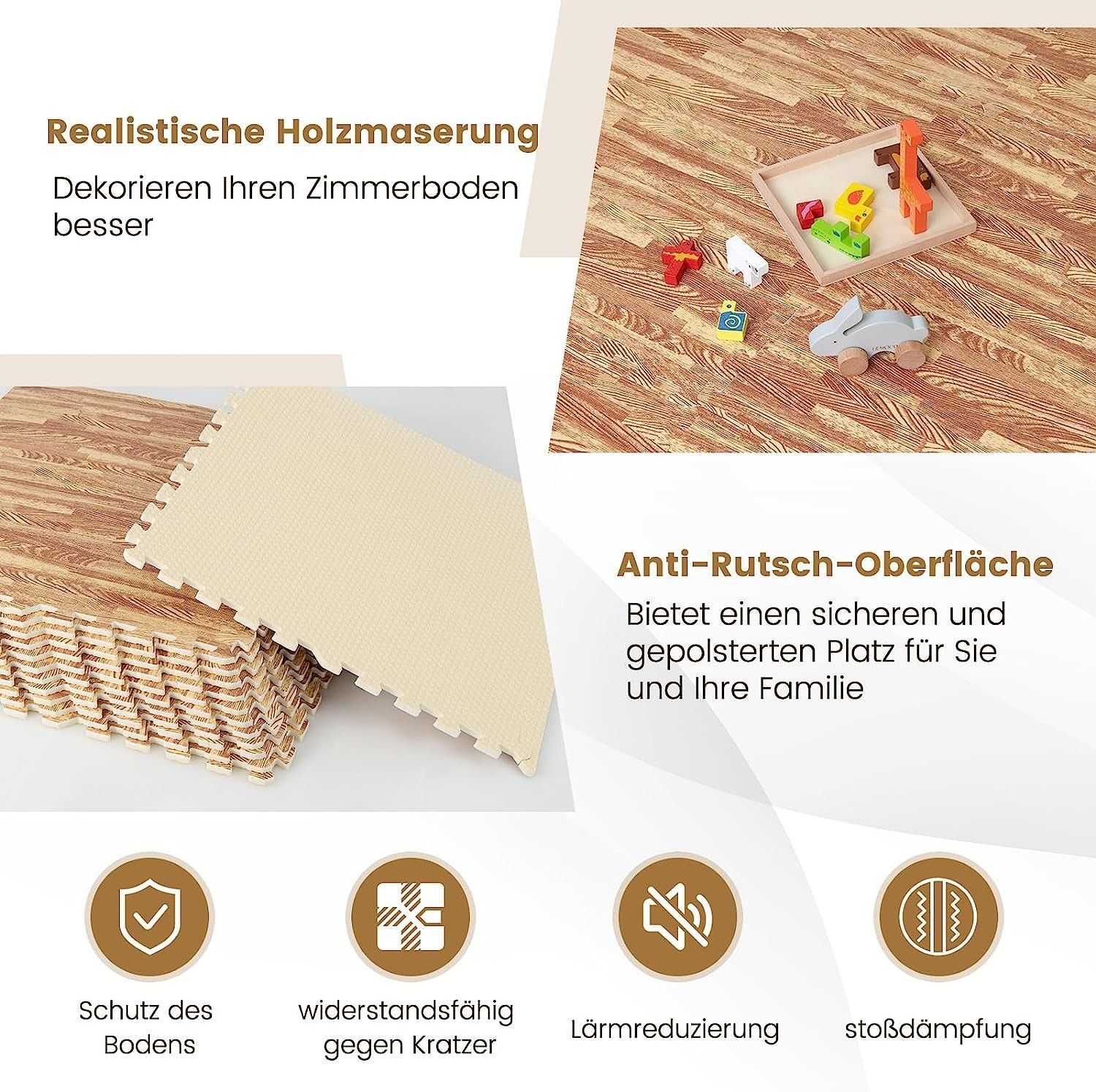 12 Stück Schutzmatte, Puzzlematte aus Eva, 61 x 61 cm, Bodenmatte mit Holzmasserung