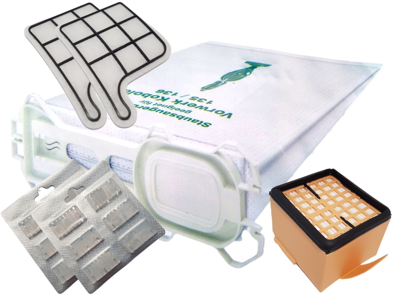 12 Staubsaugerbeutel Vlies geeignet Vorwerk Kobold VK 136 + Filterset + Duftchip