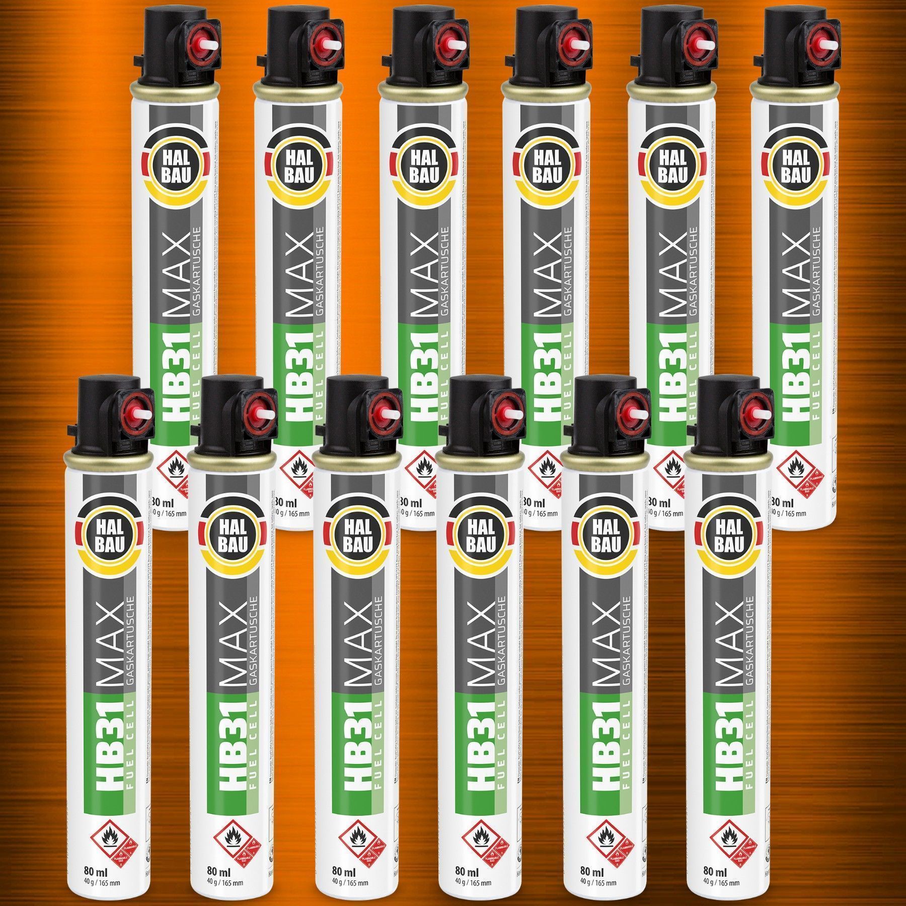 12 Stk. Gaskartuschen 80 ml 165mm (Fuel Cell) Gas HALBAU HB31