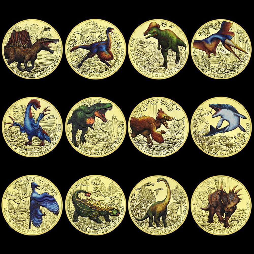 12 Stück Dinosaurier Medaillen wie abgebildet Material: vergoldet mit Farbe Größe: ca. 40 mm 24 Gramm Erhaltung: Polierte Platte Verpackung: Kapsel Erhaltung: Polierte Platte (Optische Mängel möglich) Verpackung: Kapsel Ideal für Sammler oder auch einfach nur ein schönes Geschenk.
