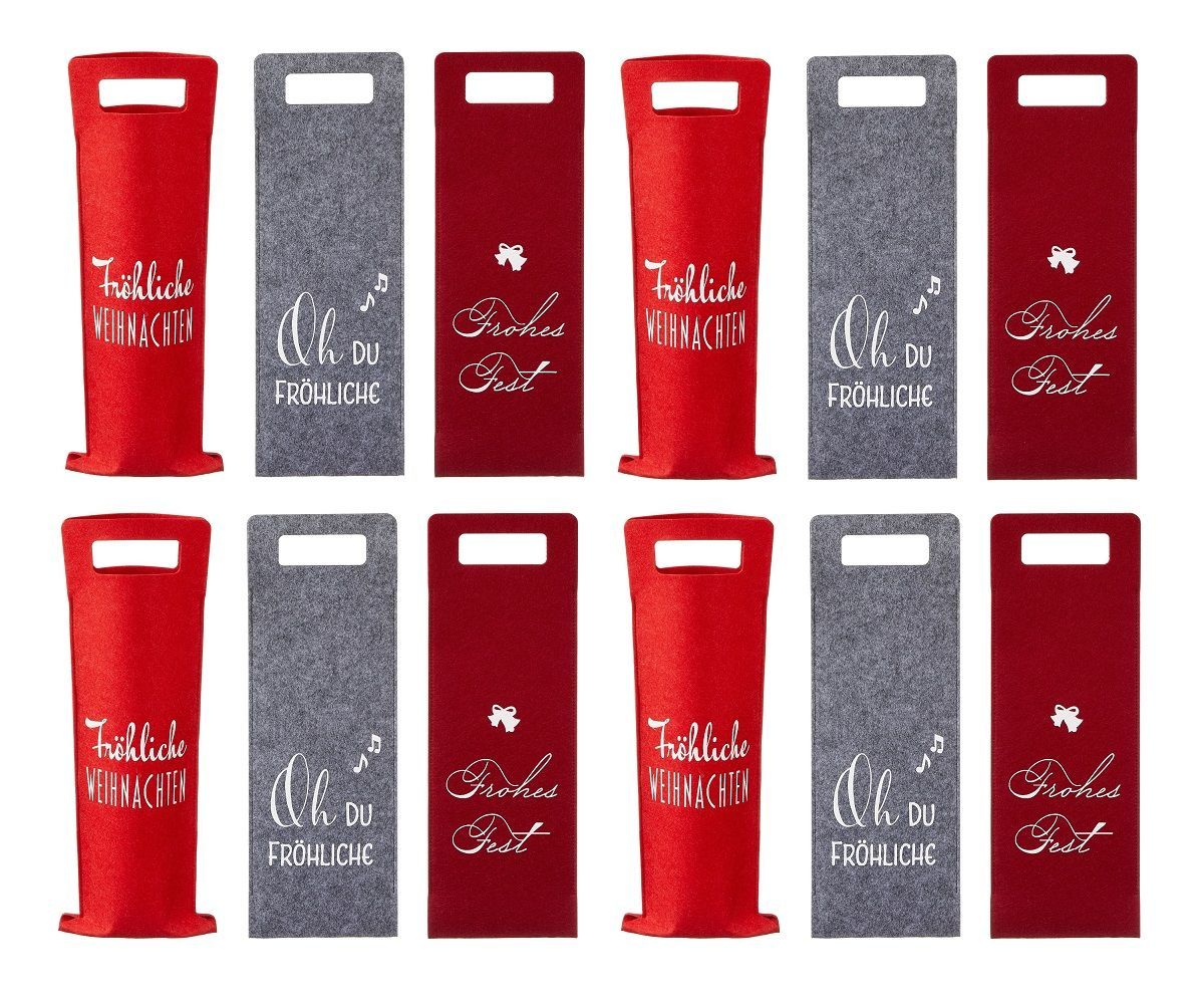 12 Stück Flaschentüten aus Filz Weihnachten Sprüche Geschenktaschen