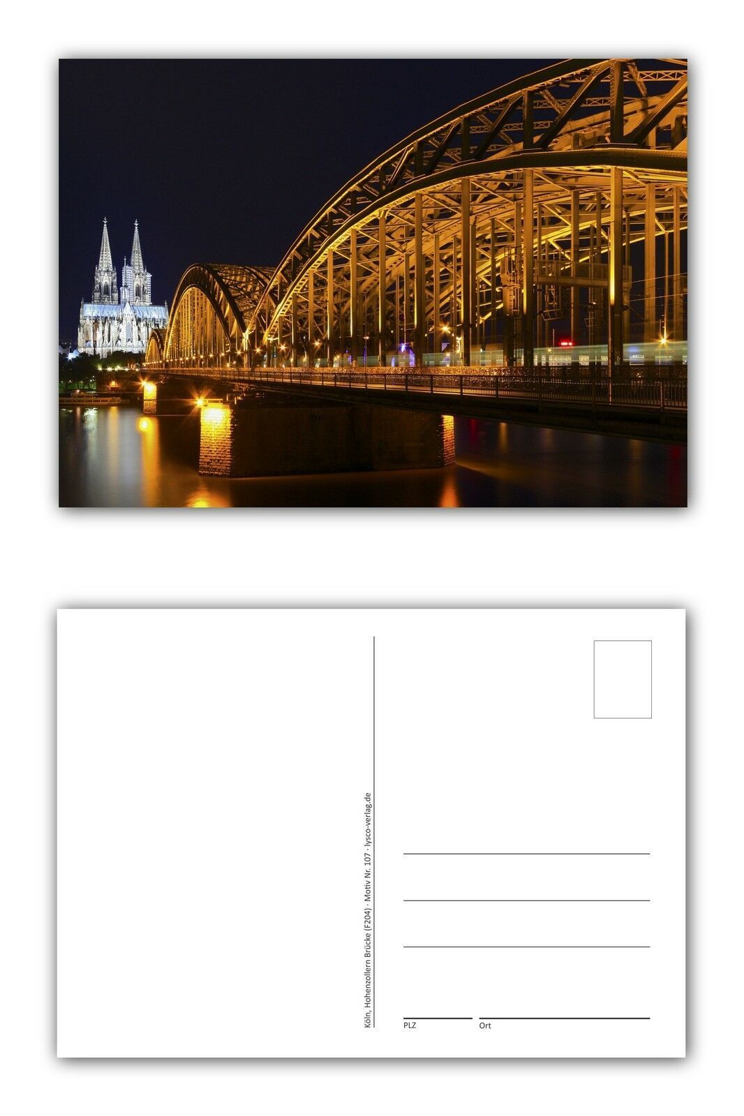 12 Stück Postkarten Köln, Hohenzollern Brücke Rhein bei Nacht Blick Kölner Dom