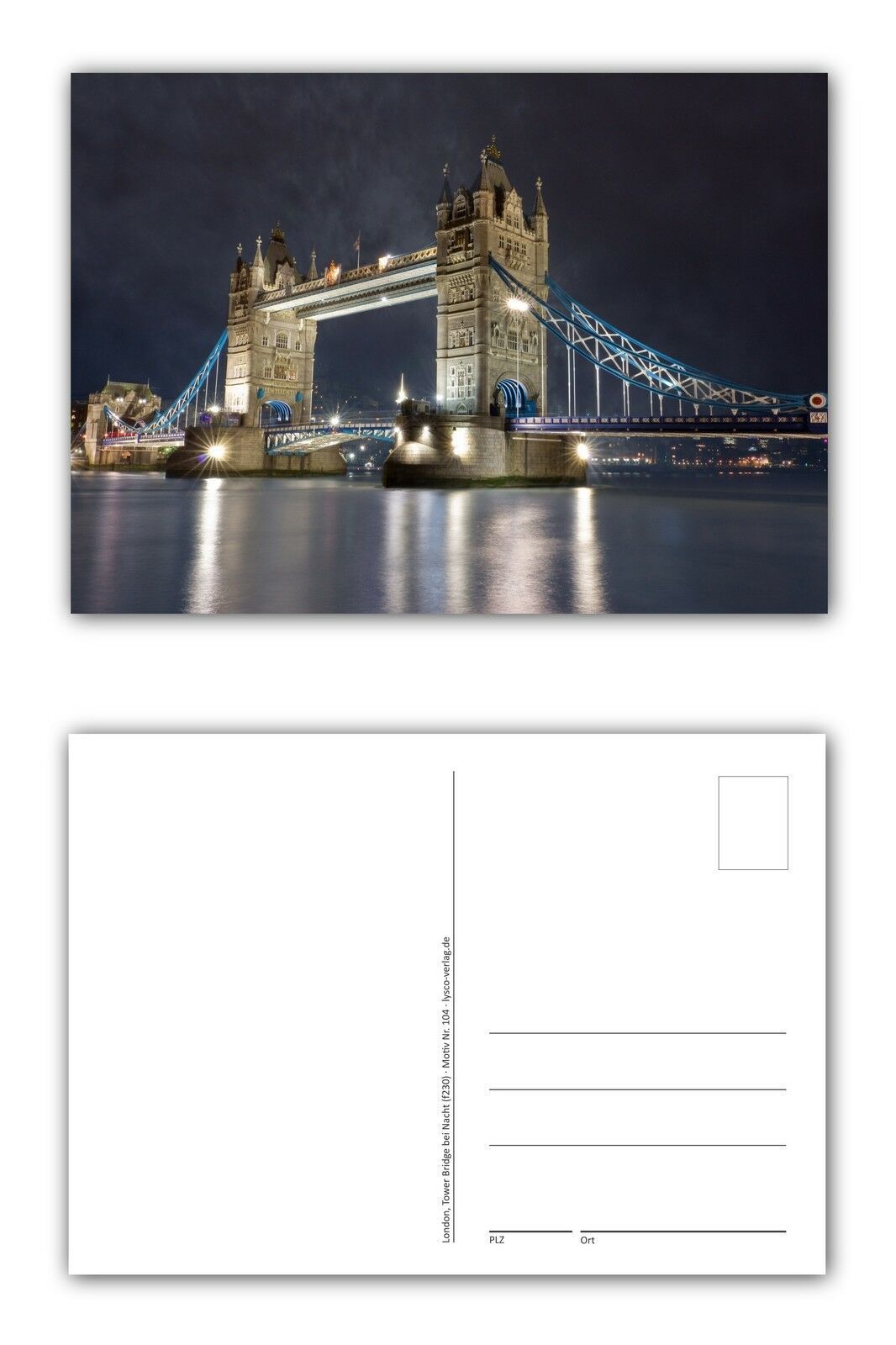 12 Stück Postkarten Tower Bridge - Brücke über die Themse bei Nacht - London