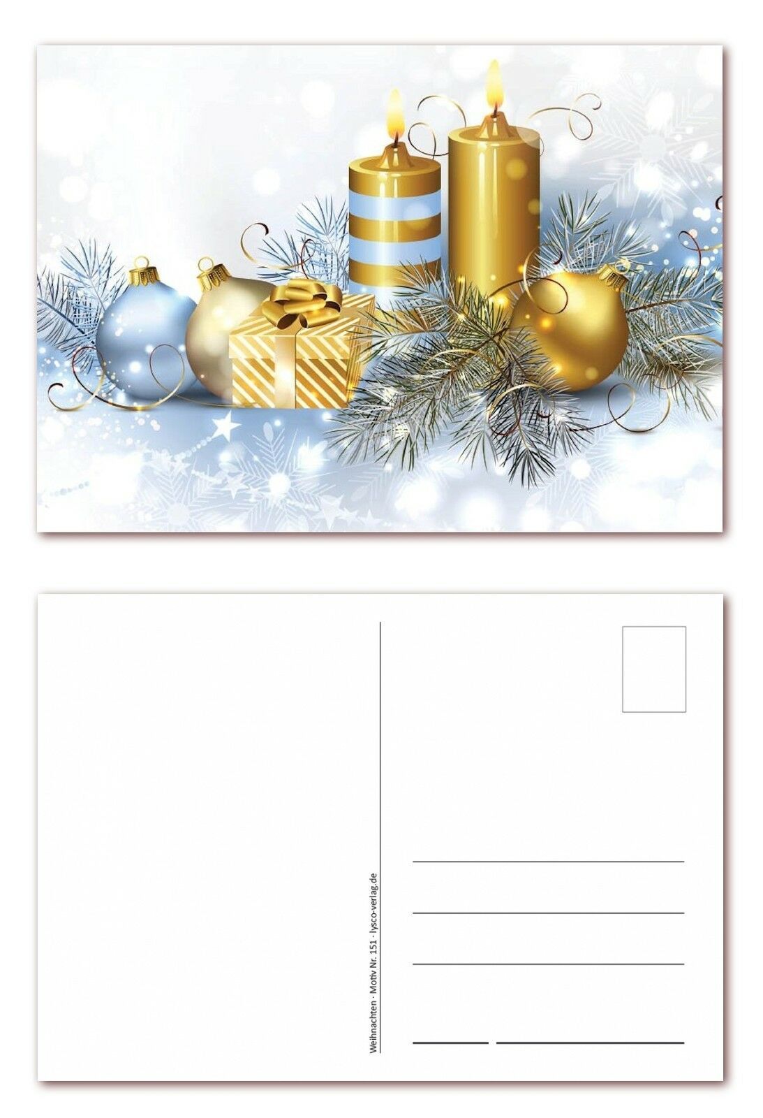 12 Stück Postkarten, Weihnachten goldene Kugeln Kerzen, Ansichtskarten (PKT-150)