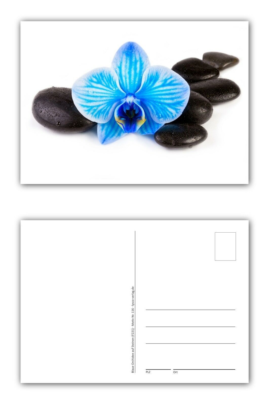 12 Stück Postkarten wunderschöne blaue Orchidee schwarze Steinen Feng Shui
