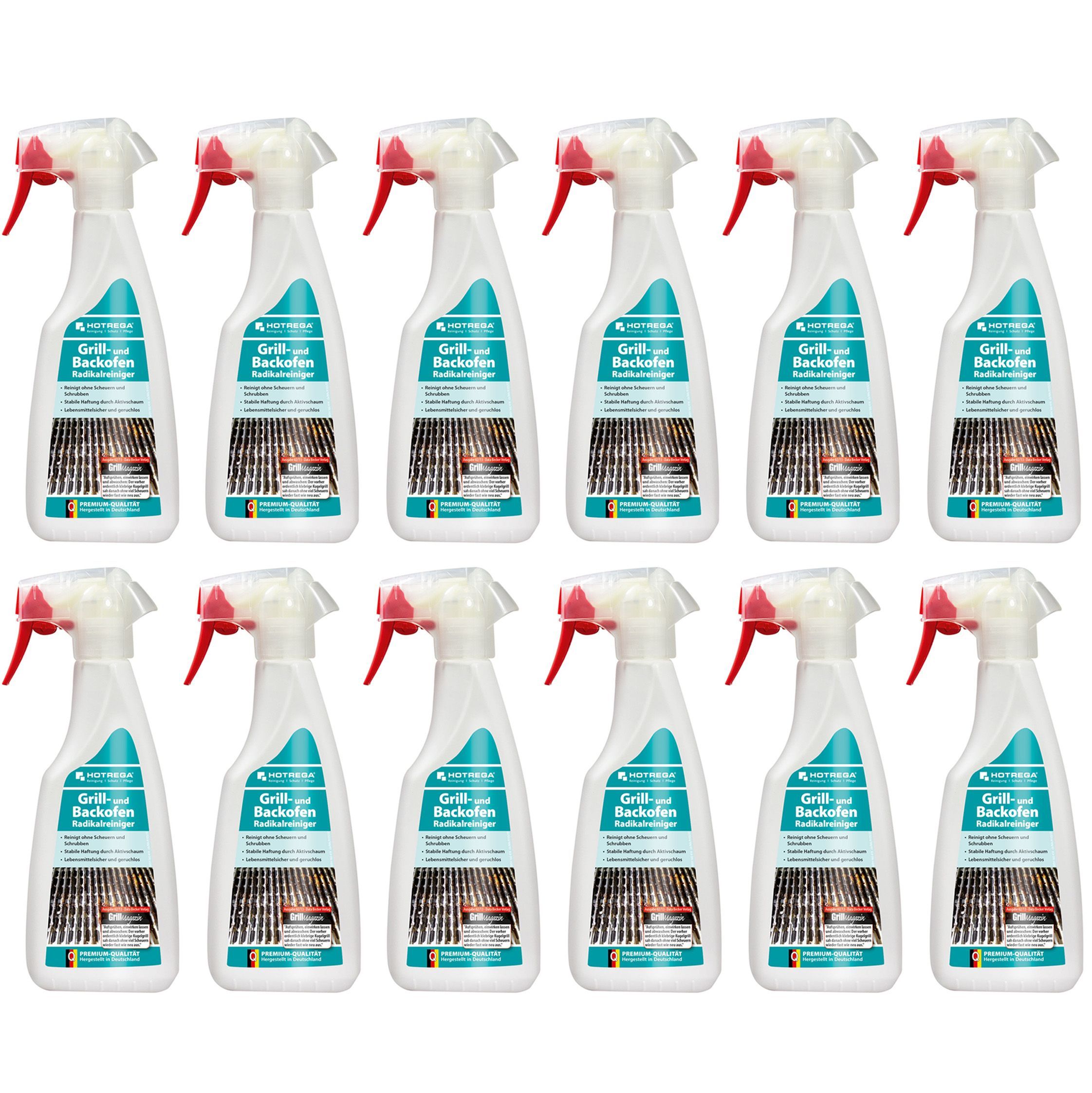 Hotrega 12 x HOTREGA® Grill- und Backofen-Radikalreiniger, 500 ml Flachsprühflasche